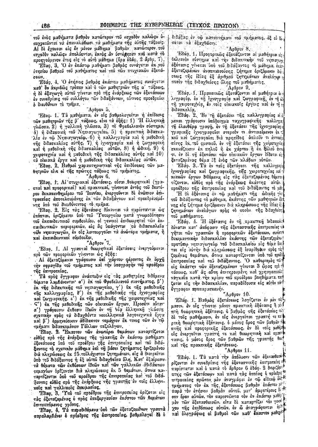 Β.Δ. Περί προγράμματος των μαθημάτων του ανωτέρου τμήματος διδασκαλείων των νηπιαγωγών