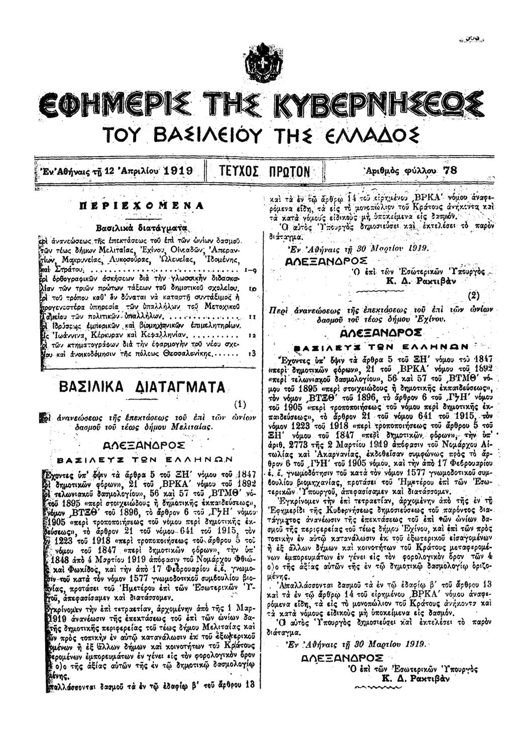 Κωδικός αναγνώρισης: 1919-078A Τίτλος: ΦΕΚ 78/12.04.1919, Τεύχος Α Μέγεθος και υπόστρωμα: Φεκ προγραμμάτων σπουδών, 3 σελίδες. |