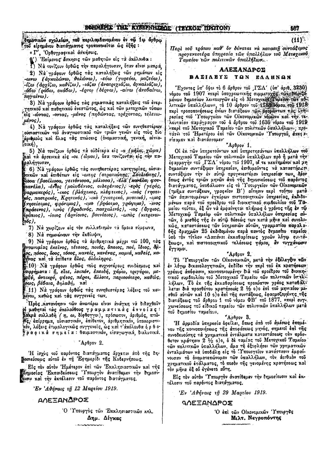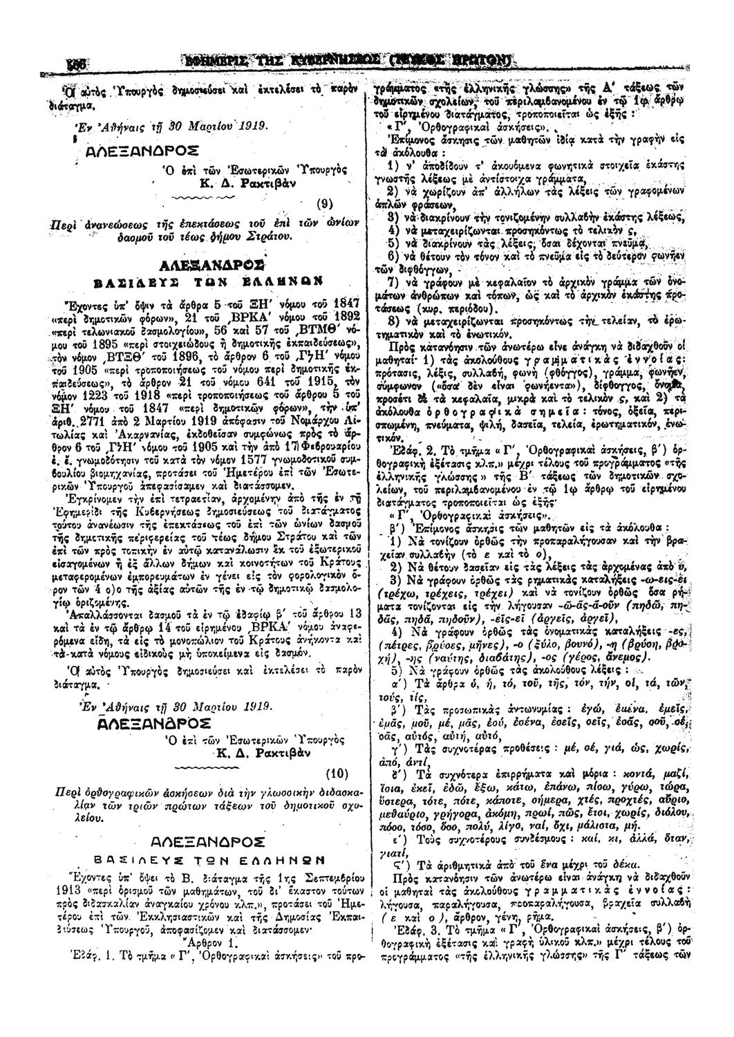 Παρουσίαση περιεχομένου: Β.Δ. Περί ορθογραφικών ασκήσεων δια την γλωσσικήν διδασκαλίαν των τριών τάξεων του δημοτικού σχολείου Σχετικές σελίδες: 1, 4-5 |