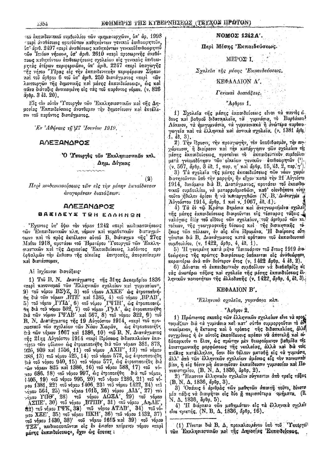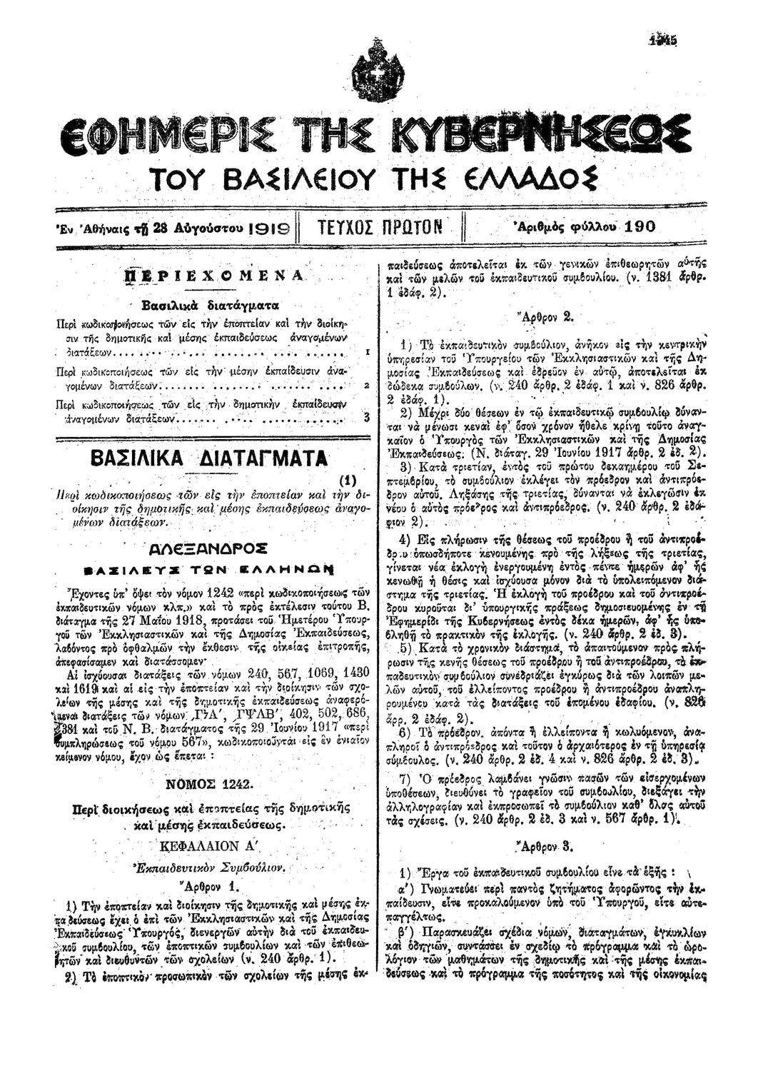 Νόμος 1242 Περί διοικήσεως και εποπτείας της δημοτικής και μέσης Εκπαιδεύσεως