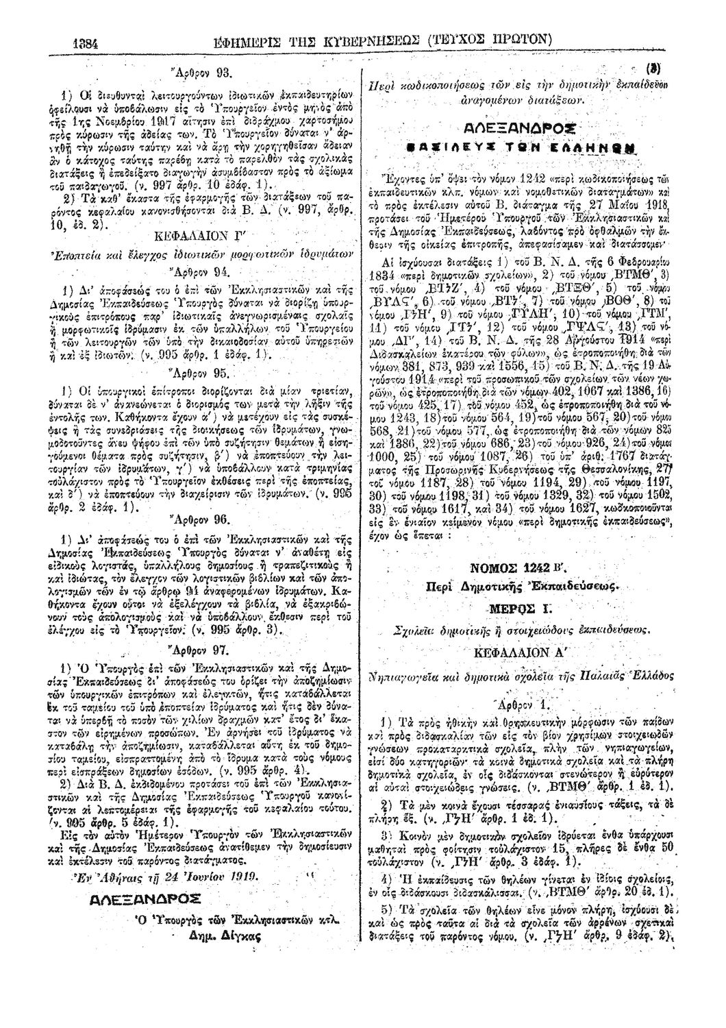 Παρουσίαση περιεχομένου: Νόμος 1242 Περί διοικήσεως και εποπτείας της δημοτικής και μέσης Εκπαιδεύσεως Σχετικές σελίδες: 1-60 |