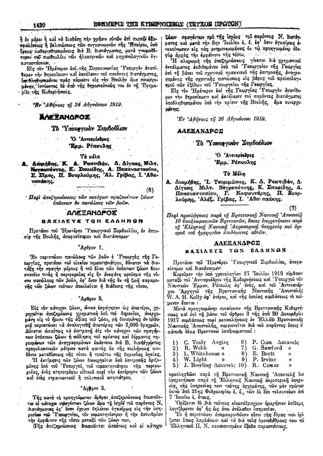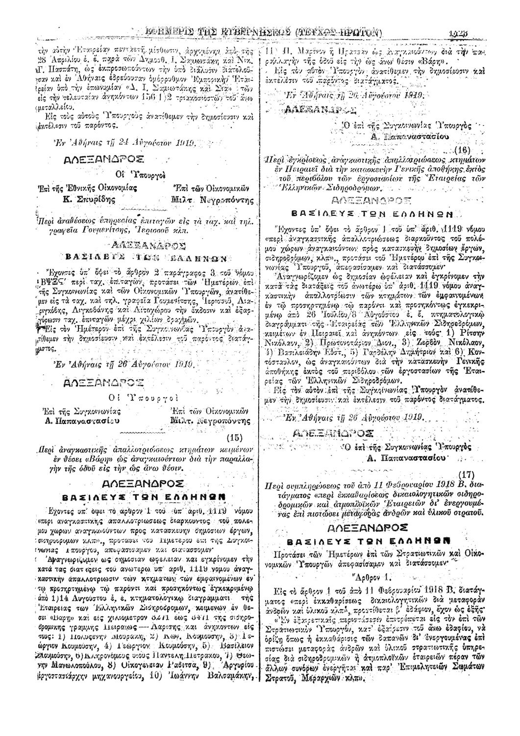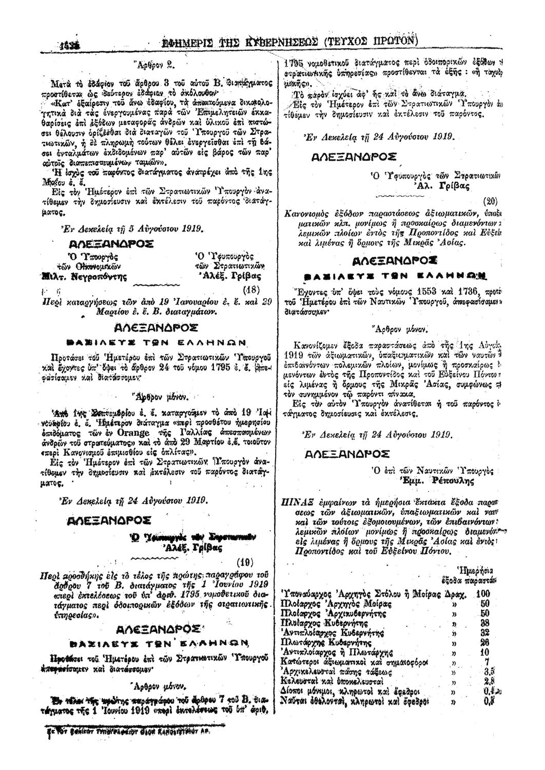 Κωδικός αναγνώρισης: 1919-193A Τίτλος: ΦΕΚ 193/30.08.1919, Τεύχος Α Μέγεθος και υπόστρωμα: Φεκ προγραμμάτων σπουδών, 2 σελίδες. |