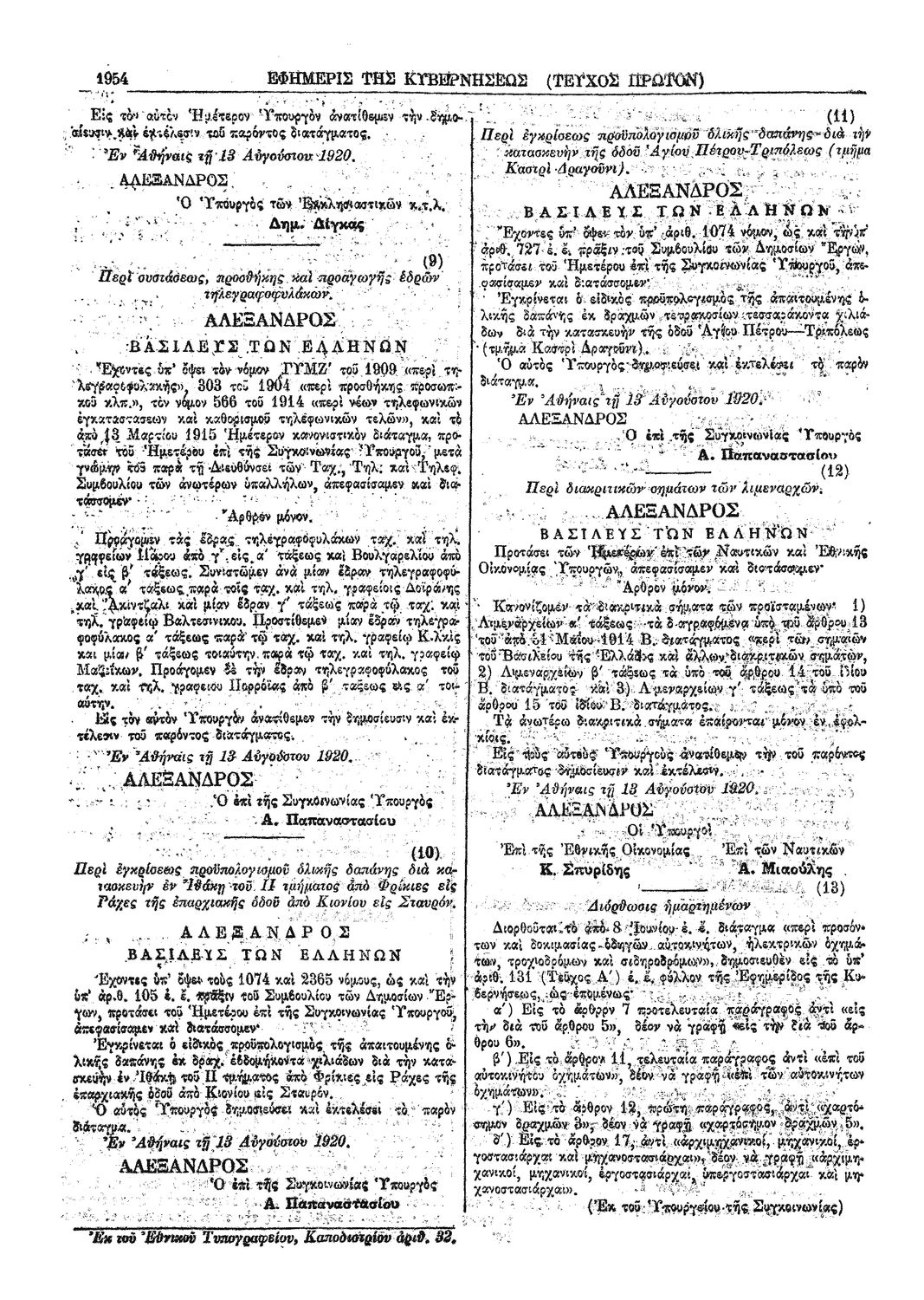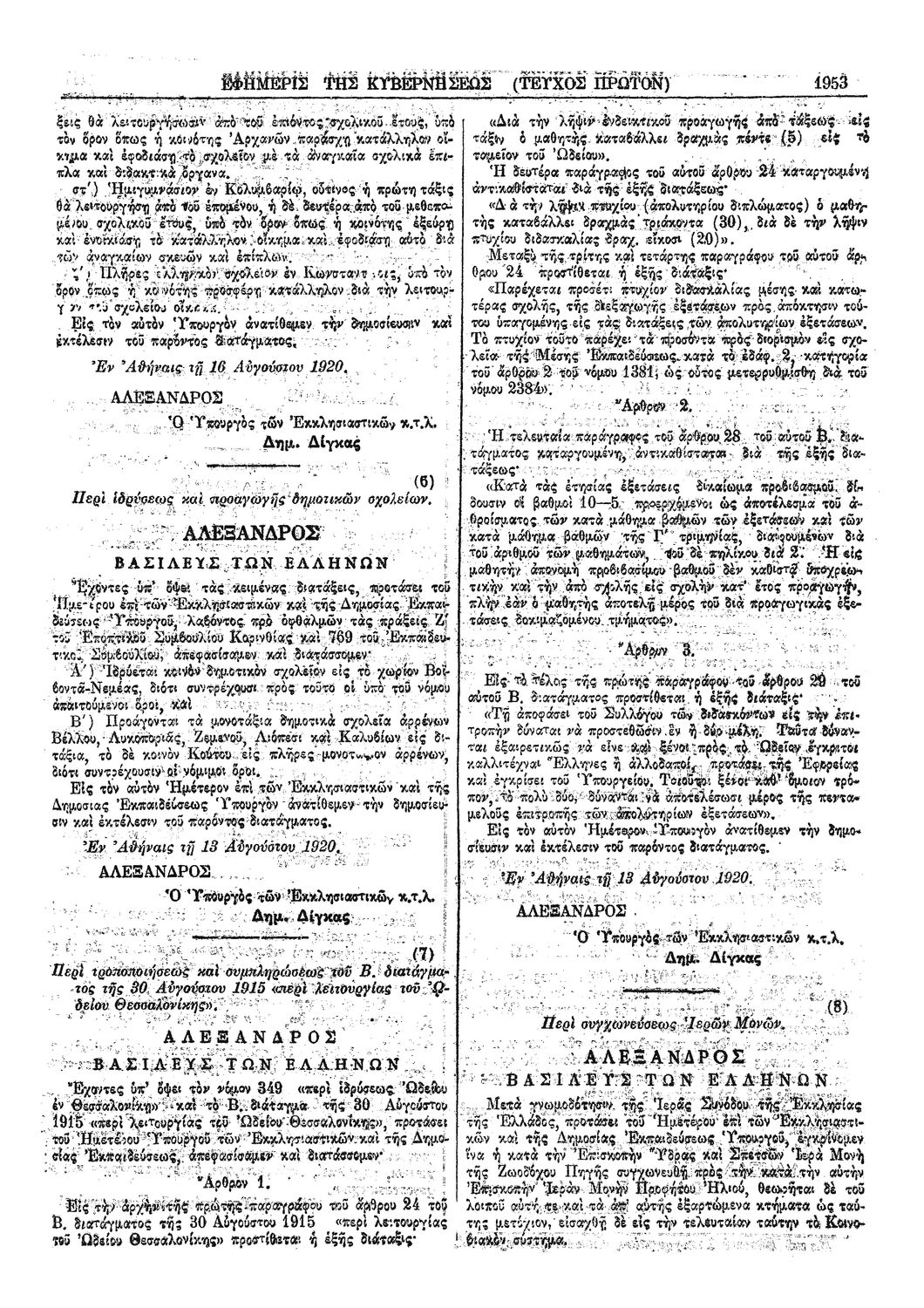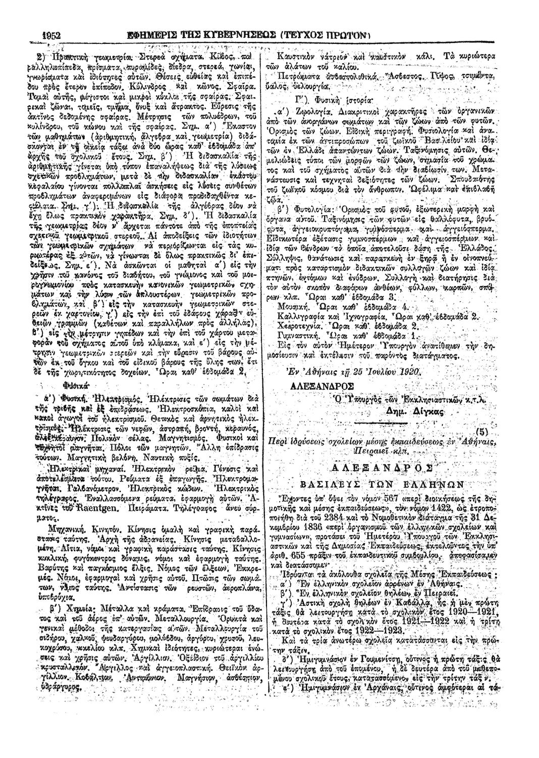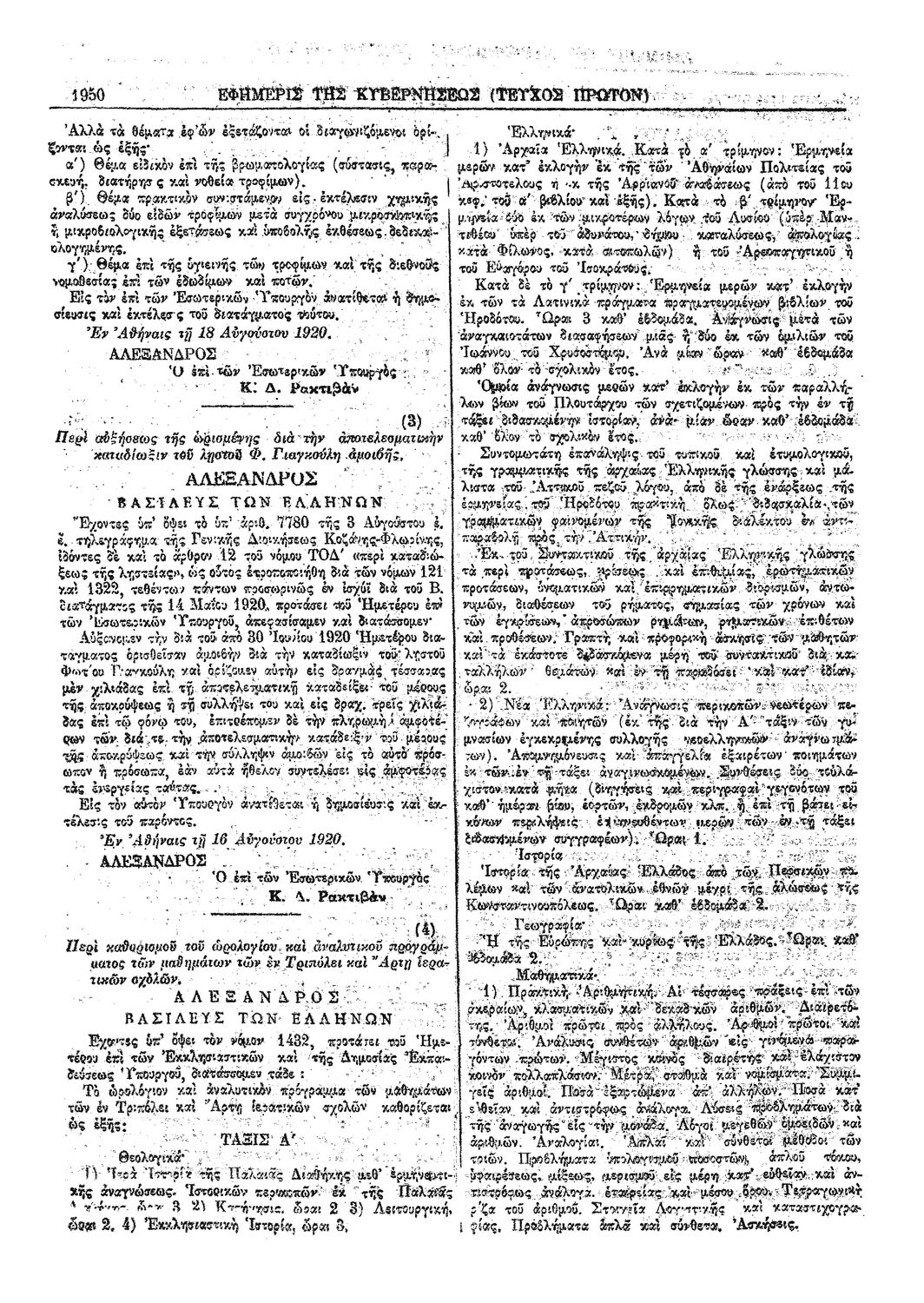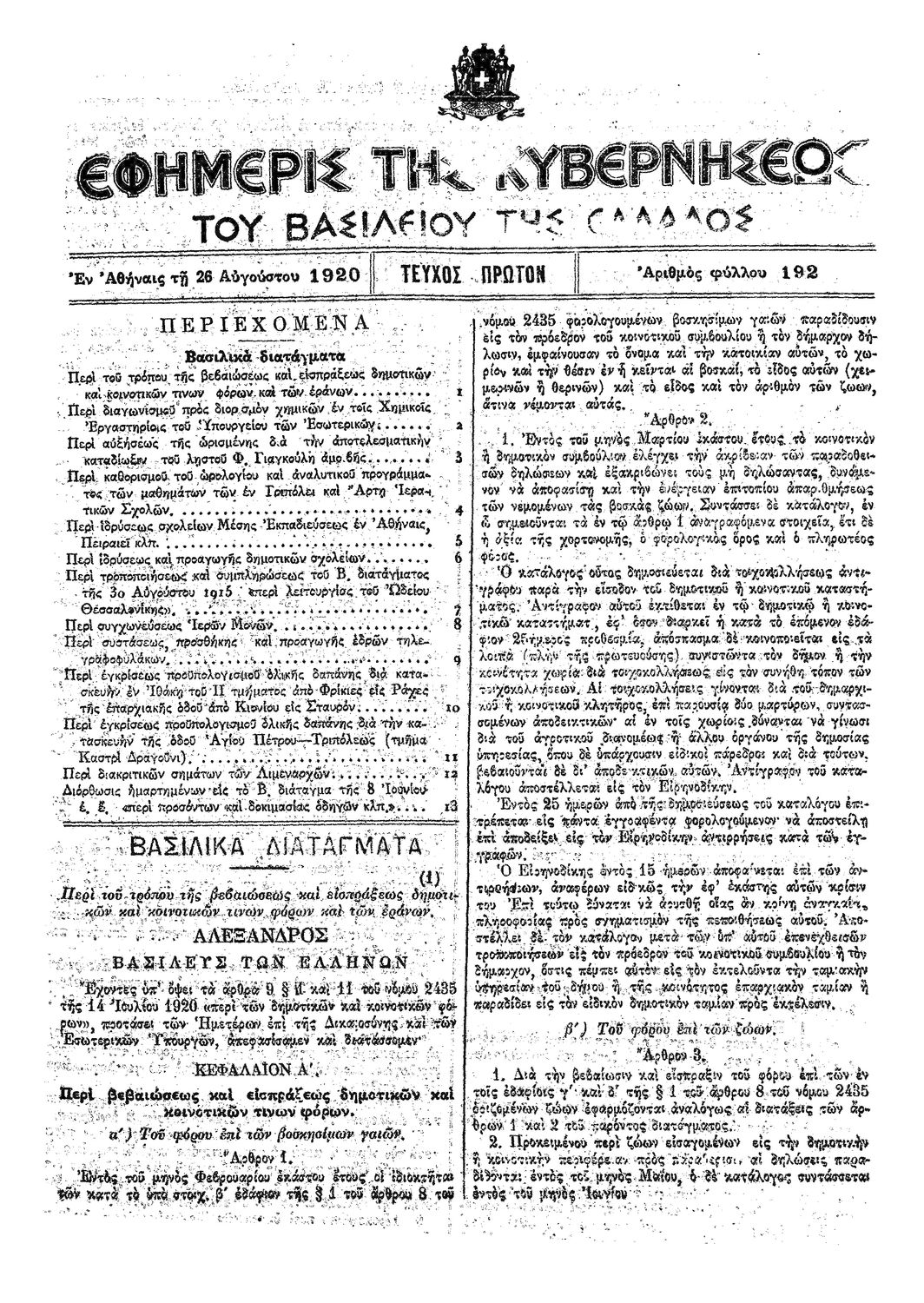 Κωδικός αναγνώρισης: 1920-192A Τίτλος: ΦΕΚ 192/26.08.1920, Τεύχος Α Μέγεθος και υπόστρωμα: Φεκ προγραμμάτων σπουδών, 4 σελίδες. |