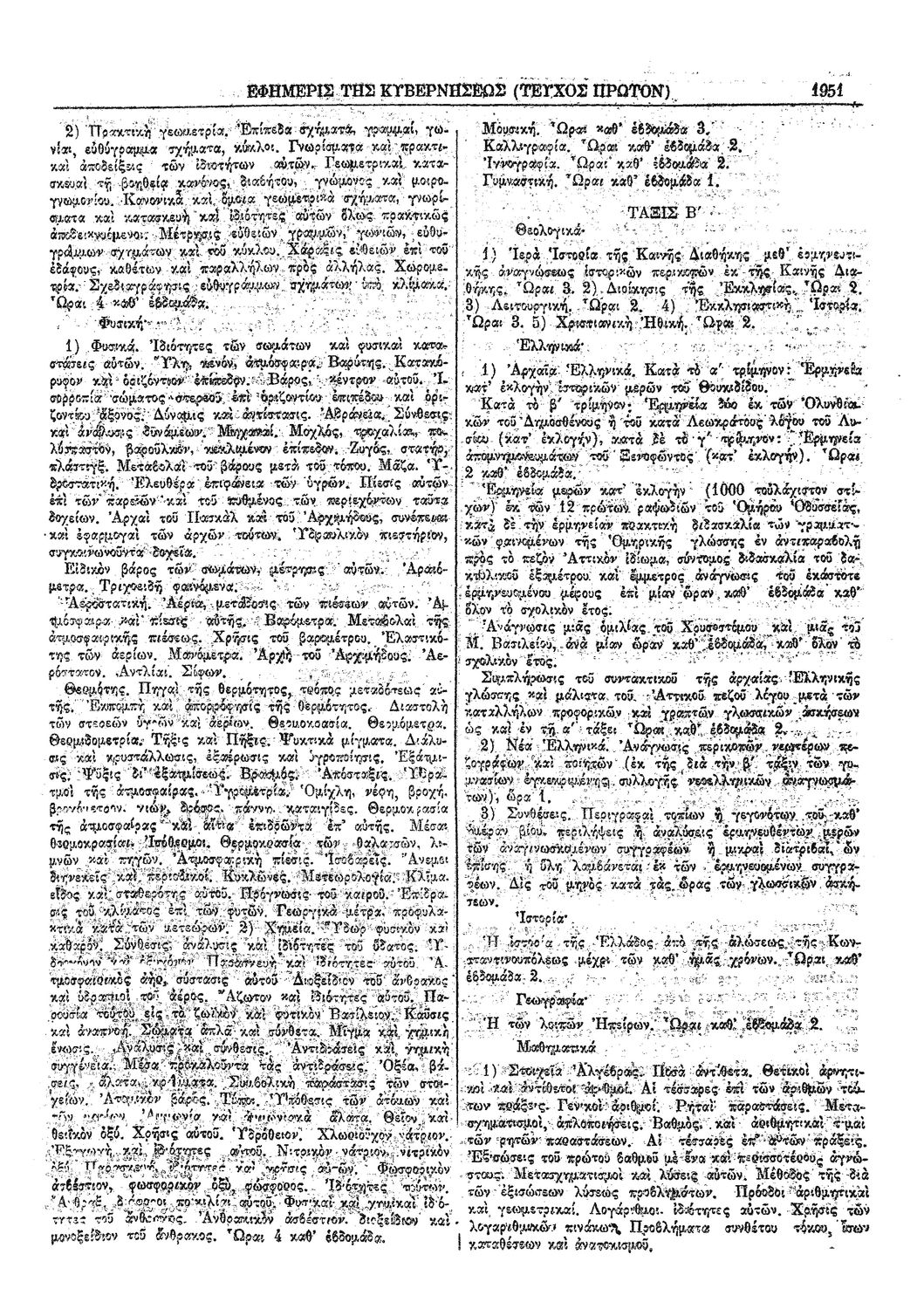 Β.Δ. Περί καθορισμού του ωρολογίου και αναλυτικού προγράμματος των μαθημάτων των εν Τριπόλει και Άρτη ιερατικών σχολών
