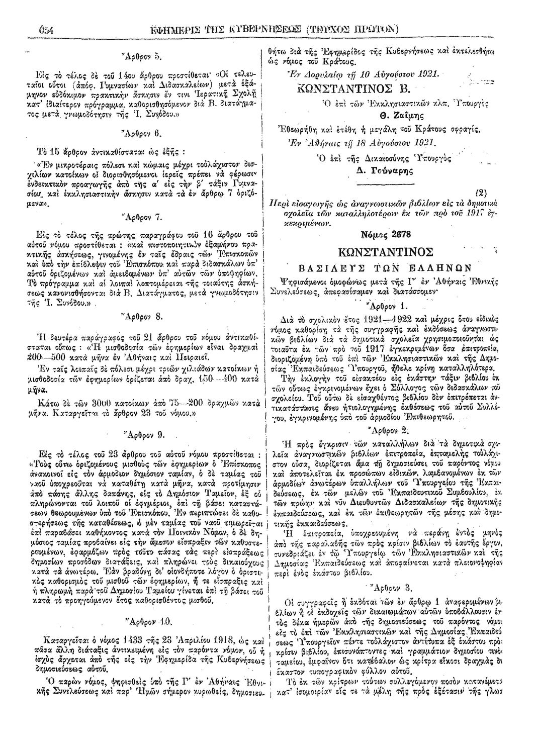 Νόμος 2678 Περί εισαγωγής ως αναγνωστικών βιβλίων εις τα δημοτικά σχολεία των καταλληλοτέρων εκ των προ του 1917 εγκεκριμένων