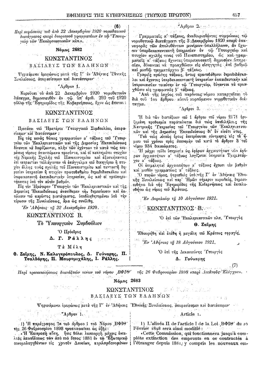 Κωδικός αναγνώρισης: 1921-147A Τίτλος: ΦΕΚ 147/19.08.1921, Τεύχος Α Μέγεθος και υπόστρωμα: Φεκ προγραμμάτων σπουδών, 3 σελίδες. |