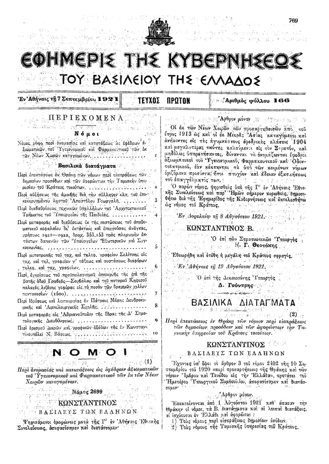 Κωδικός αναγνώρισης: 1921-166A Τίτλος: ΦΕΚ 166/07.09.1921, Τεύχος Α Μέγεθος και υπόστρωμα: Φεκ προγραμμάτων σπουδών, 3 σελίδες. |