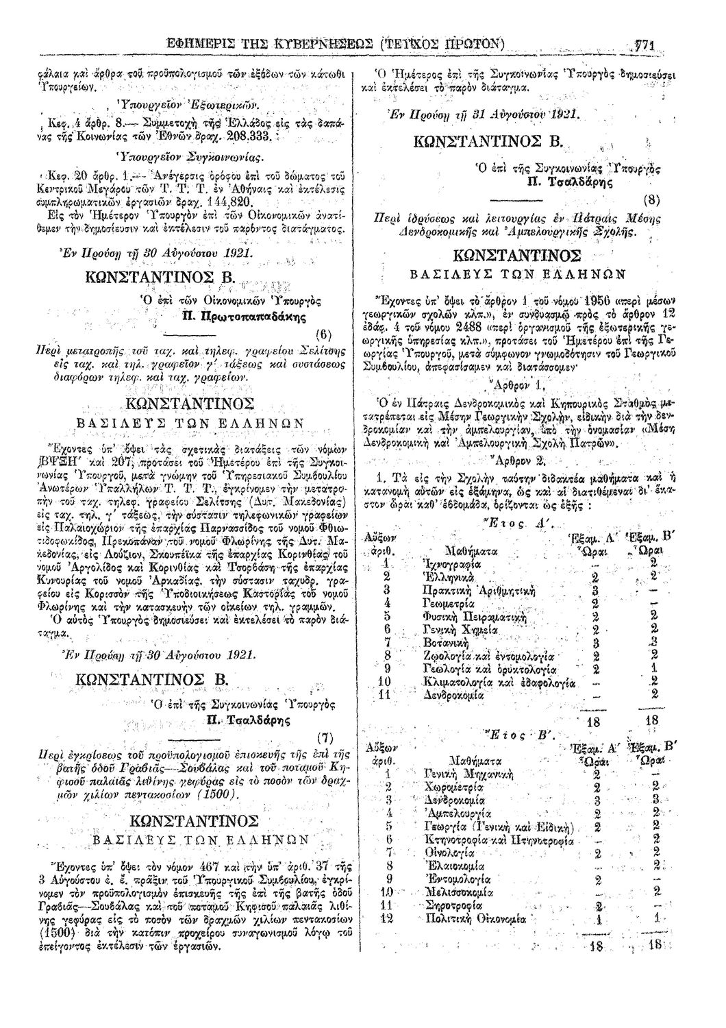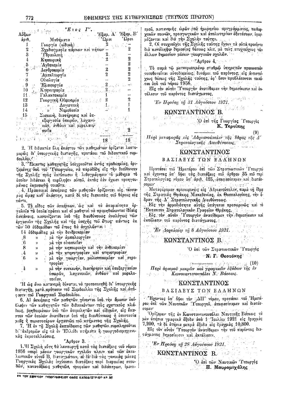 Β.Δ. Περί ιδρύσεως καί λειτουργίας εν Πάτραις Μέσης Δενδροκομικής και Αμπελουργικής Σχολής