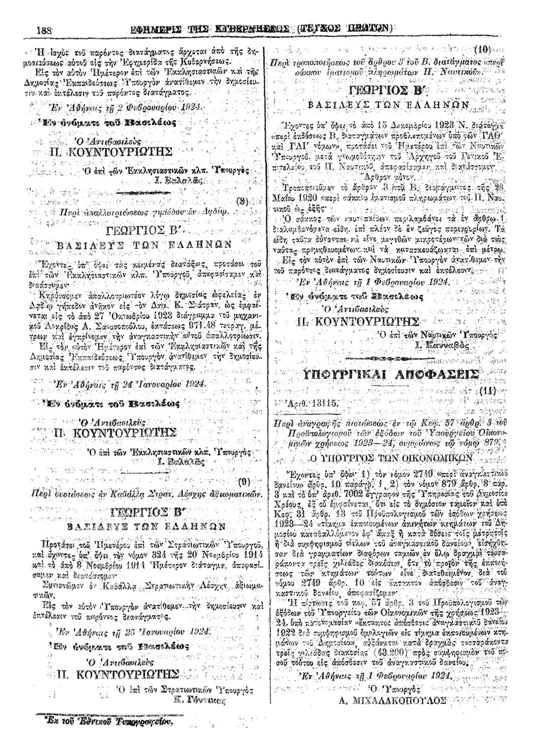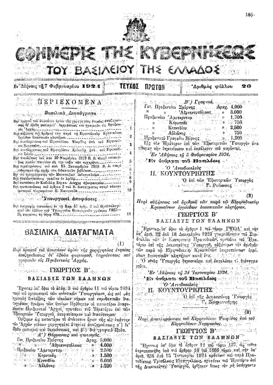 Κωδικός αναγνώρισης: 1924-026A Τίτλος: ΦΕΚ 26/07.02.1924, Τεύχος Α Μέγεθος και υπόστρωμα: Φεκ προγραμμάτων σπουδών, 4 σελίδες. |