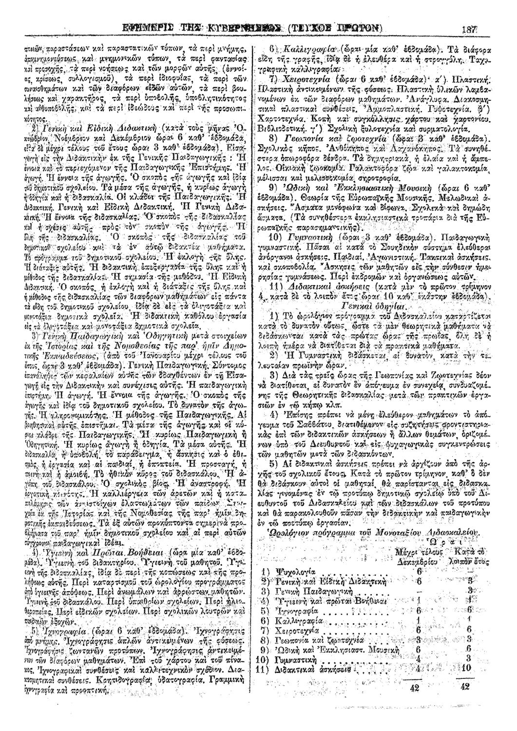 Β.Δ. Περί του προγράμματος των μονοταξίων Διδασκαλείων