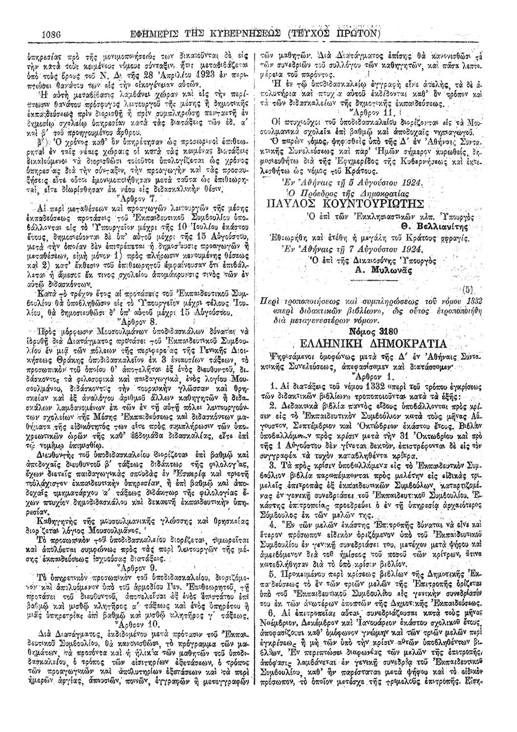Νόμος 3190 Περί τροποποιήσεως και συμπληρώσεως του Νόμου1332 περί διδακτικών βιβλίων, ως ούτος ετροποποιήθη δια μεταγενέστερων νόμων
