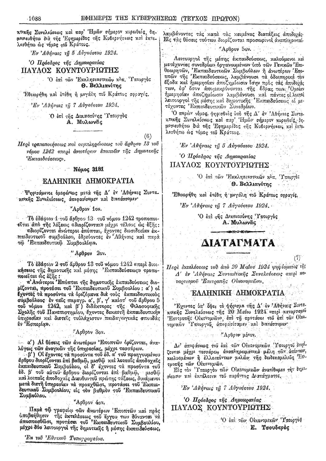 Κωδικός αναγνώρισης: 1924-186A Τίτλος: ΦΕΚ 186/07.08.1924, Τεύχος Α Μέγεθος και υπόστρωμα: Φεκ προγραμμάτων σπουδών, 4 σελίδες. |