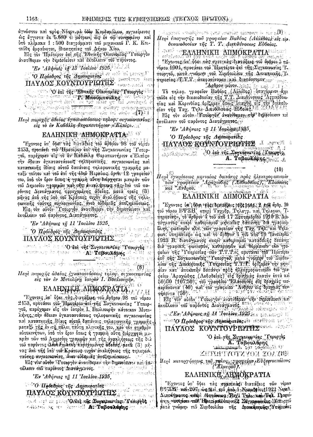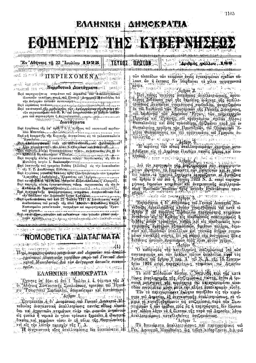 Κωδικός αναγνώρισης: 1925-188A Τίτλος: ΦΕΚ 188/22.07.1925, Τεύχος Α Μέγεθος και υπόστρωμα: Φεκ προγραμμάτων σπουδών, 5 σελίδες. |