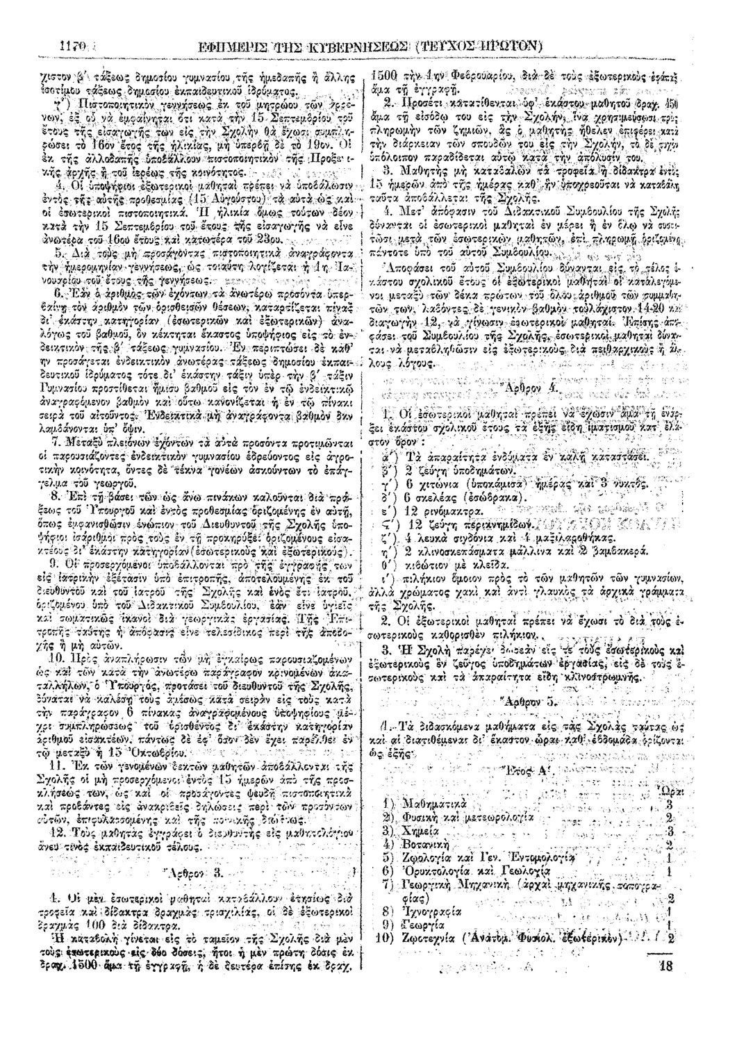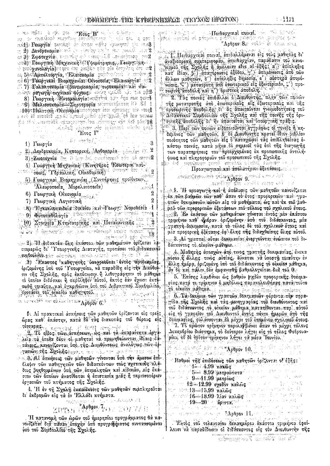 Παρουσίαση περιεχομένου: Δ. Περί κατατάξεως, σπουδών και καθηκόντων των μαθητών των γενικών μέσων γεωργικών σχολών Σχετικές σελίδες: 1, 5-8 |