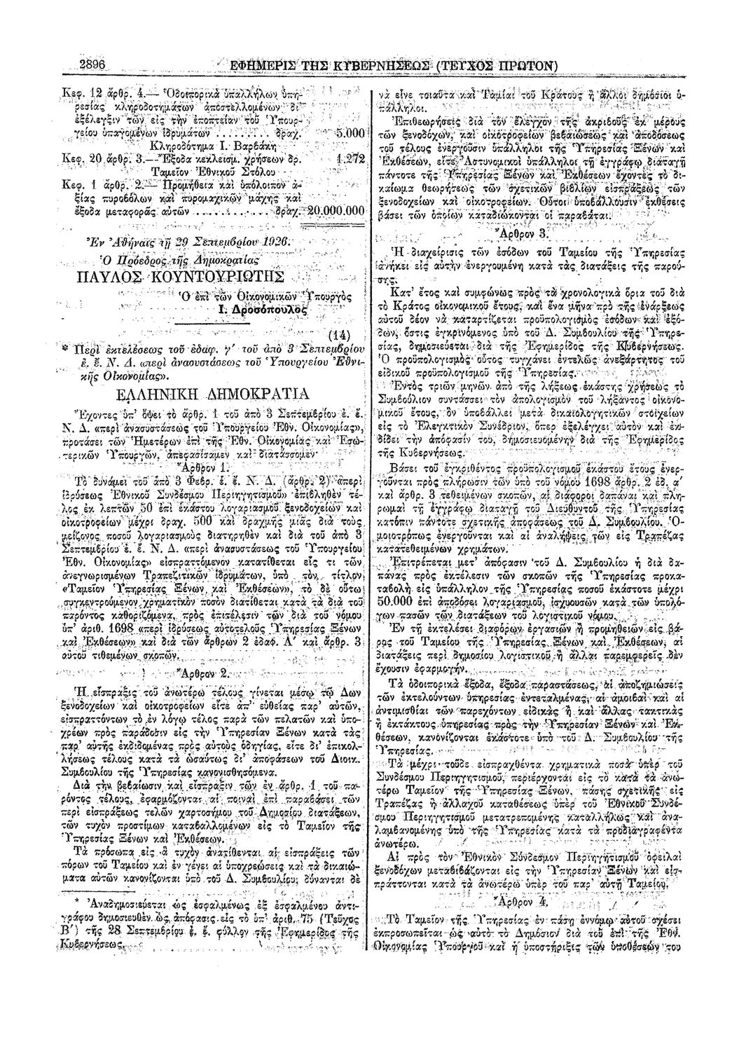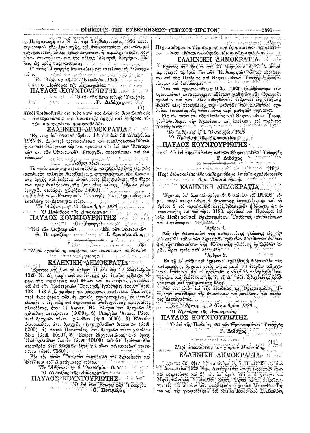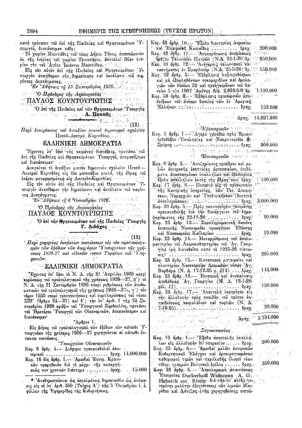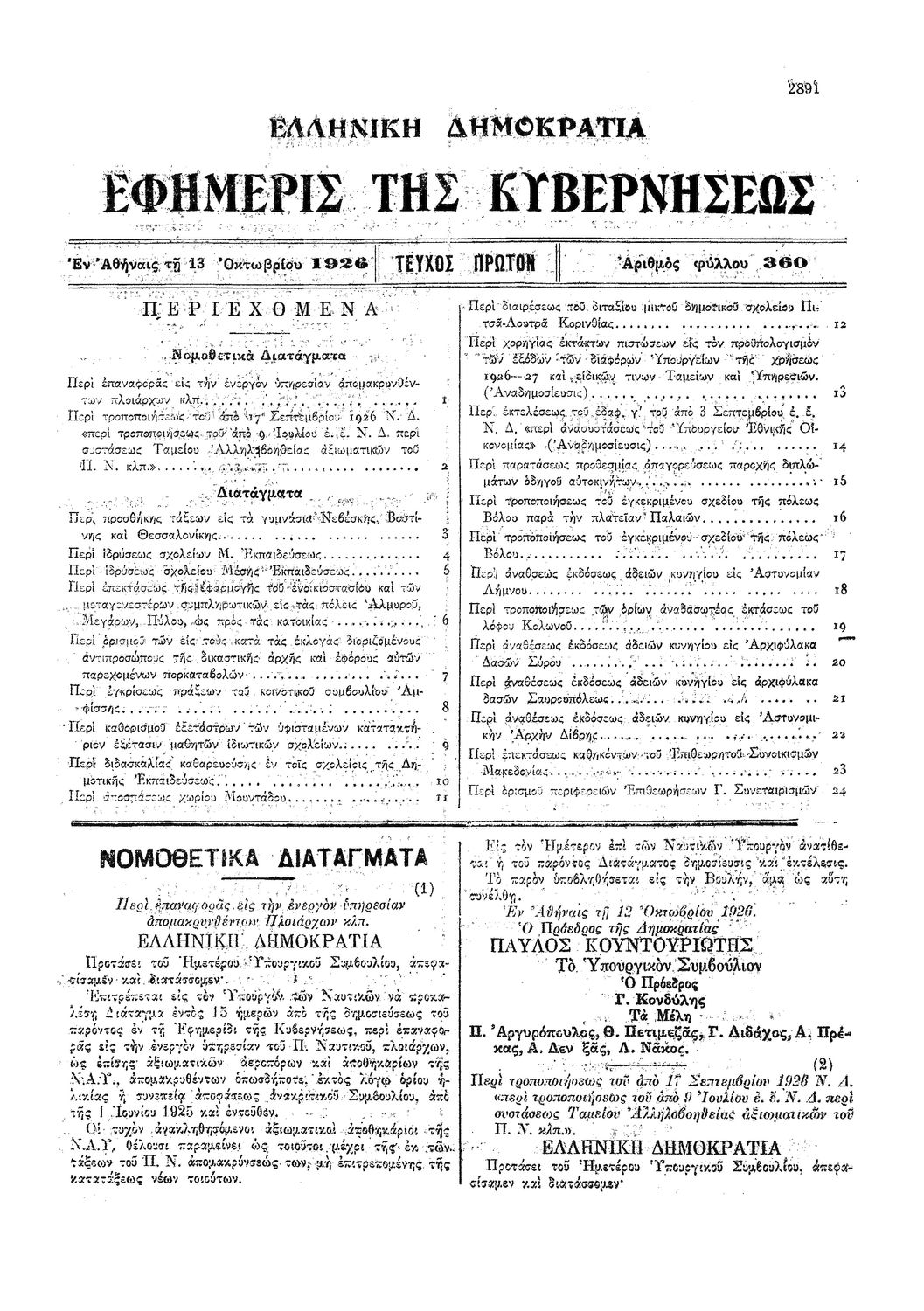 Κωδικός αναγνώρισης: 1926-360A Τίτλος: ΦΕΚ 360/13.10.1926, Τεύχος Α Μέγεθος και υπόστρωμα: Φεκ προγραμμάτων σπουδών, 2 σελίδες. |