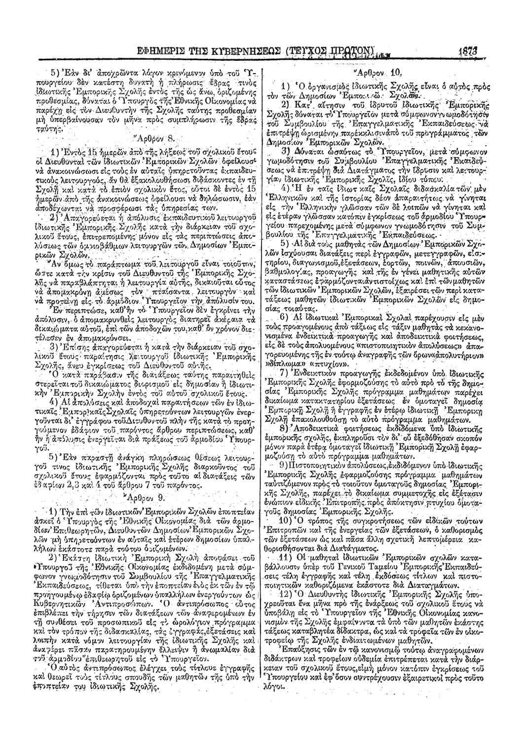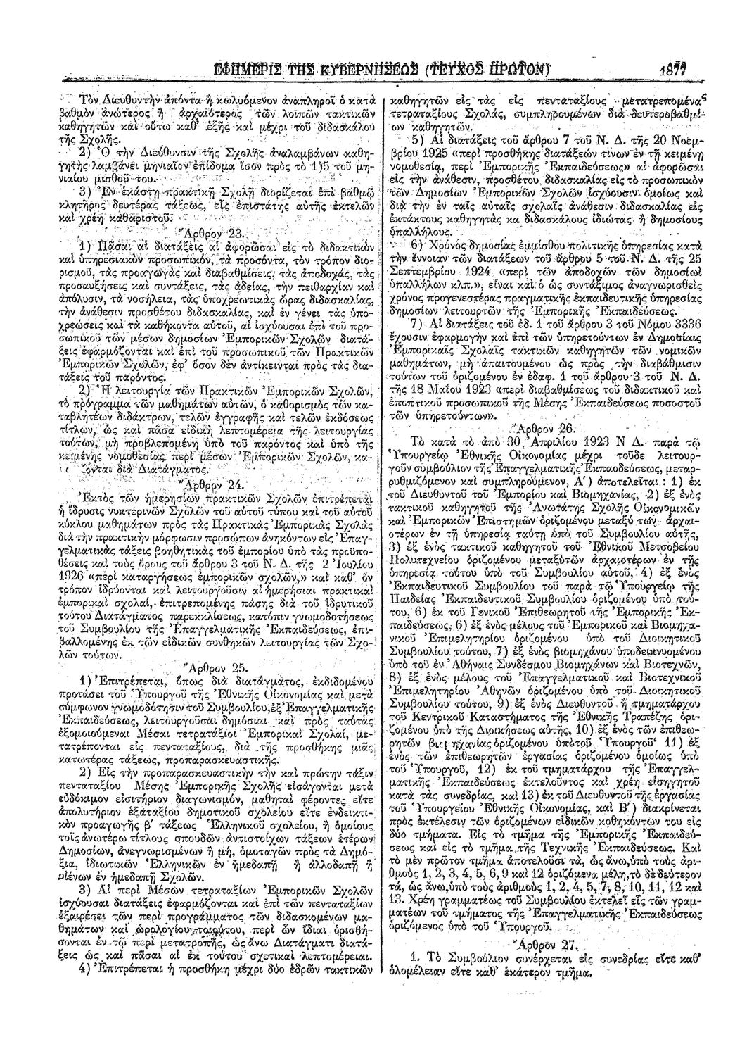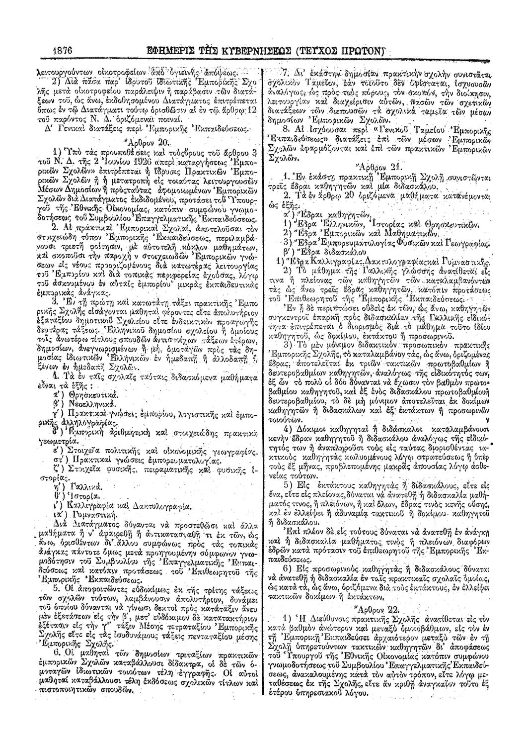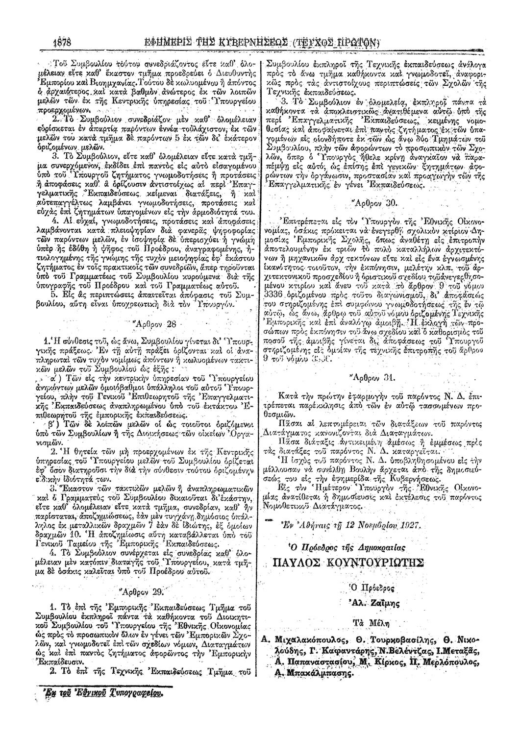 Ν.Δ. Περί κυρώσεως και τροποποιήσεως του Ν.Δ. της 10 Σεπτεμβρίου 1926 "περί τροποποιήσεως και συμπληρώσεως των κειμένων περί ιδιωτικής εμπορικής εκπαιδεύσεως διατάξεων" και προσθήκης ετέρων τοιούτων περί εμπορικής εκπαιδεύσεως εν γένει»