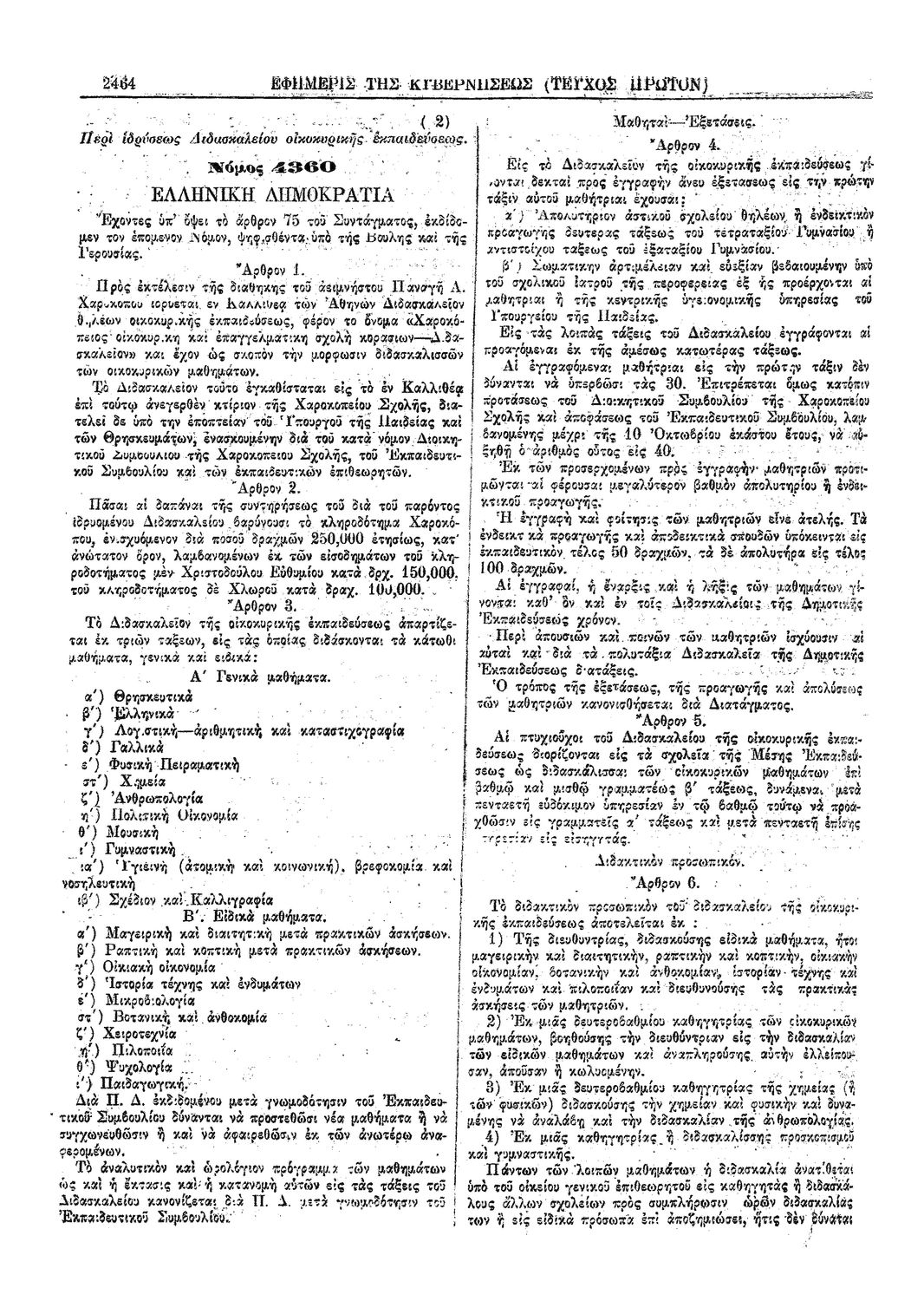 Νόμος 4360 Περί ιδρύσεως Διδασκαλείου οικοκυρικής εκπαιδεύσεως