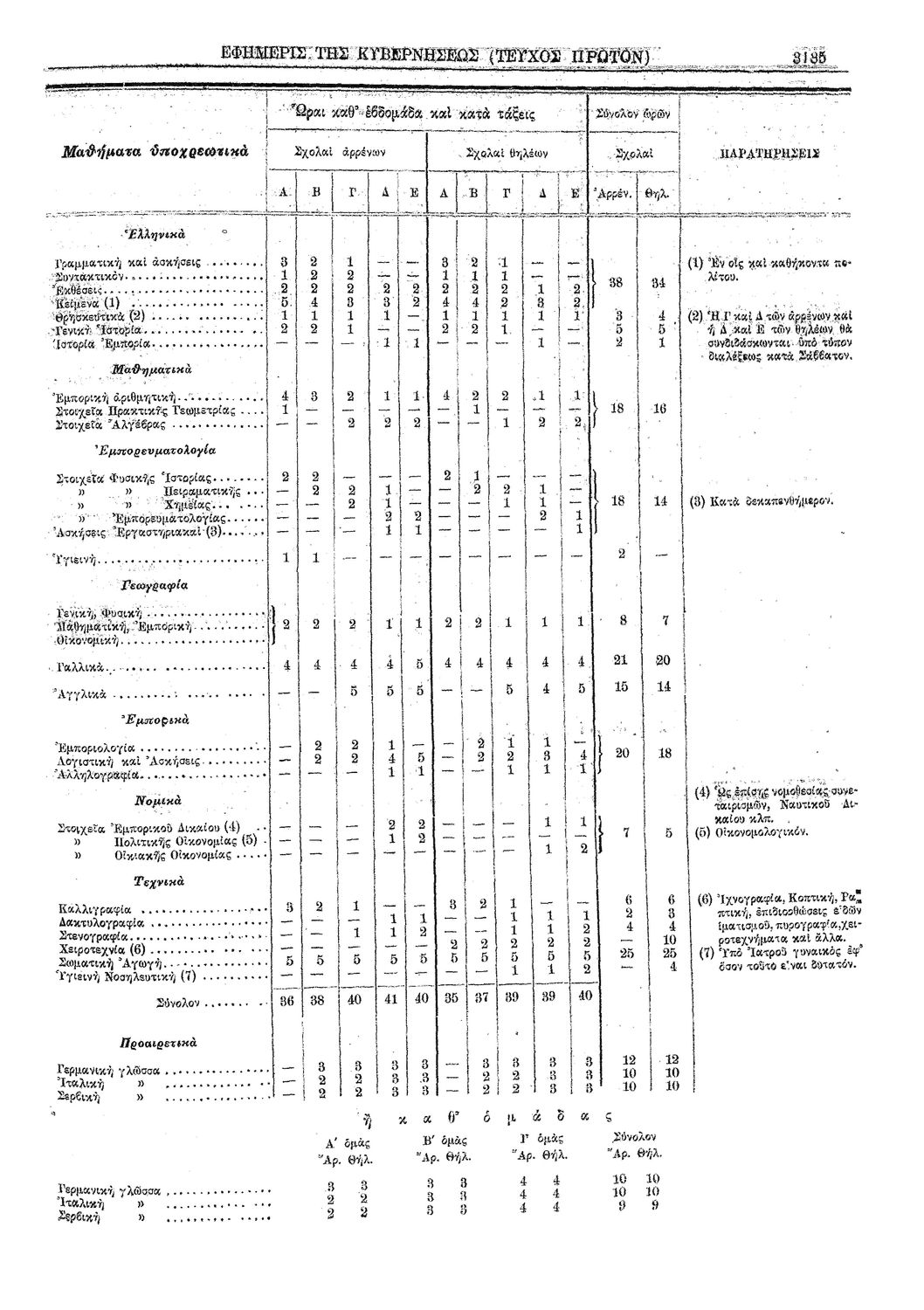 Δ. Περί καθορισμού των διδακτέων εν ταις πενταξίοις μέσαις εμπορικαίς σχολαίς και εν ταις τριταξίοις πρακτικαίς τοιαύταις μαθημάτων