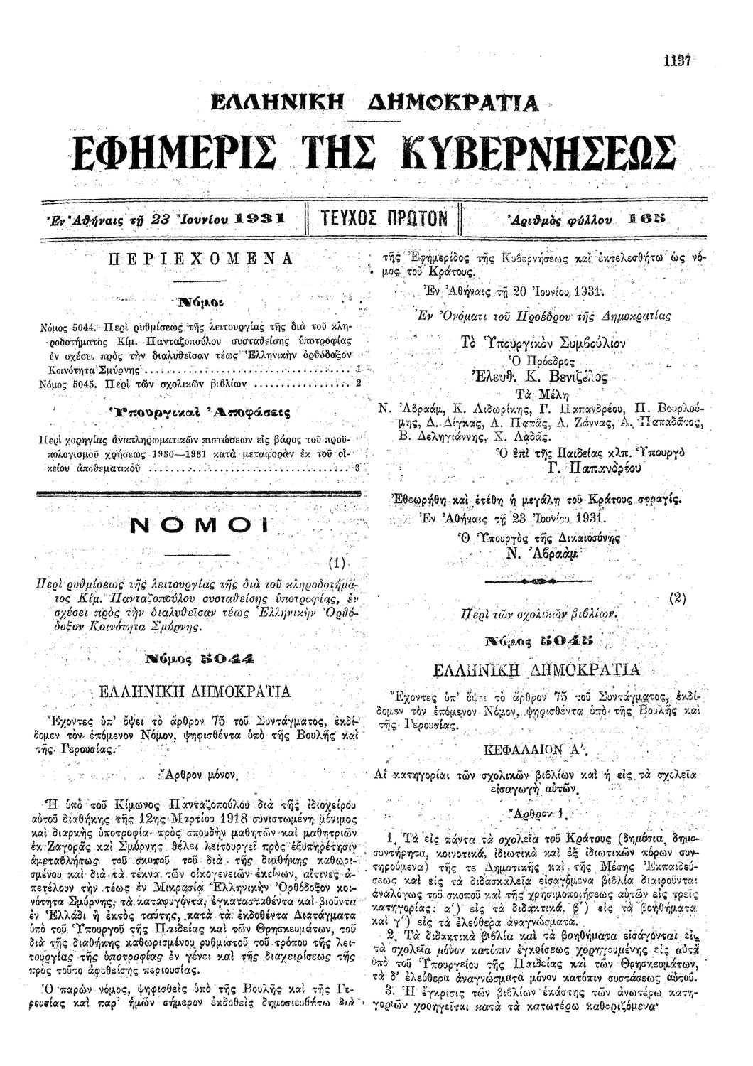 Παρουσίαση περιεχομένου: Νόμος 5045 Περί των σχολικών βιβλίων Σχετικές σελίδες: 1-7 |