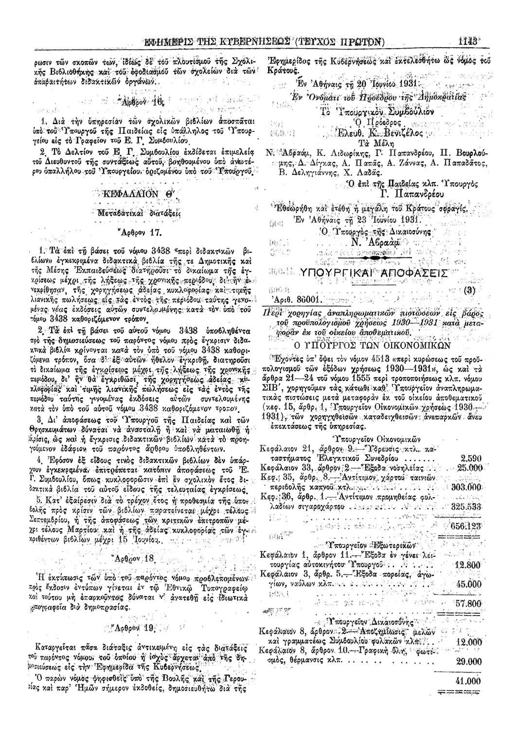 Κωδικός αναγνώρισης: 1931-165A Τίτλος: ΦΕΚ 165/23.06.1931, Τεύχος Α Μέγεθος και υπόστρωμα: Φεκ προγραμμάτων σπουδών, 7 σελίδες. |