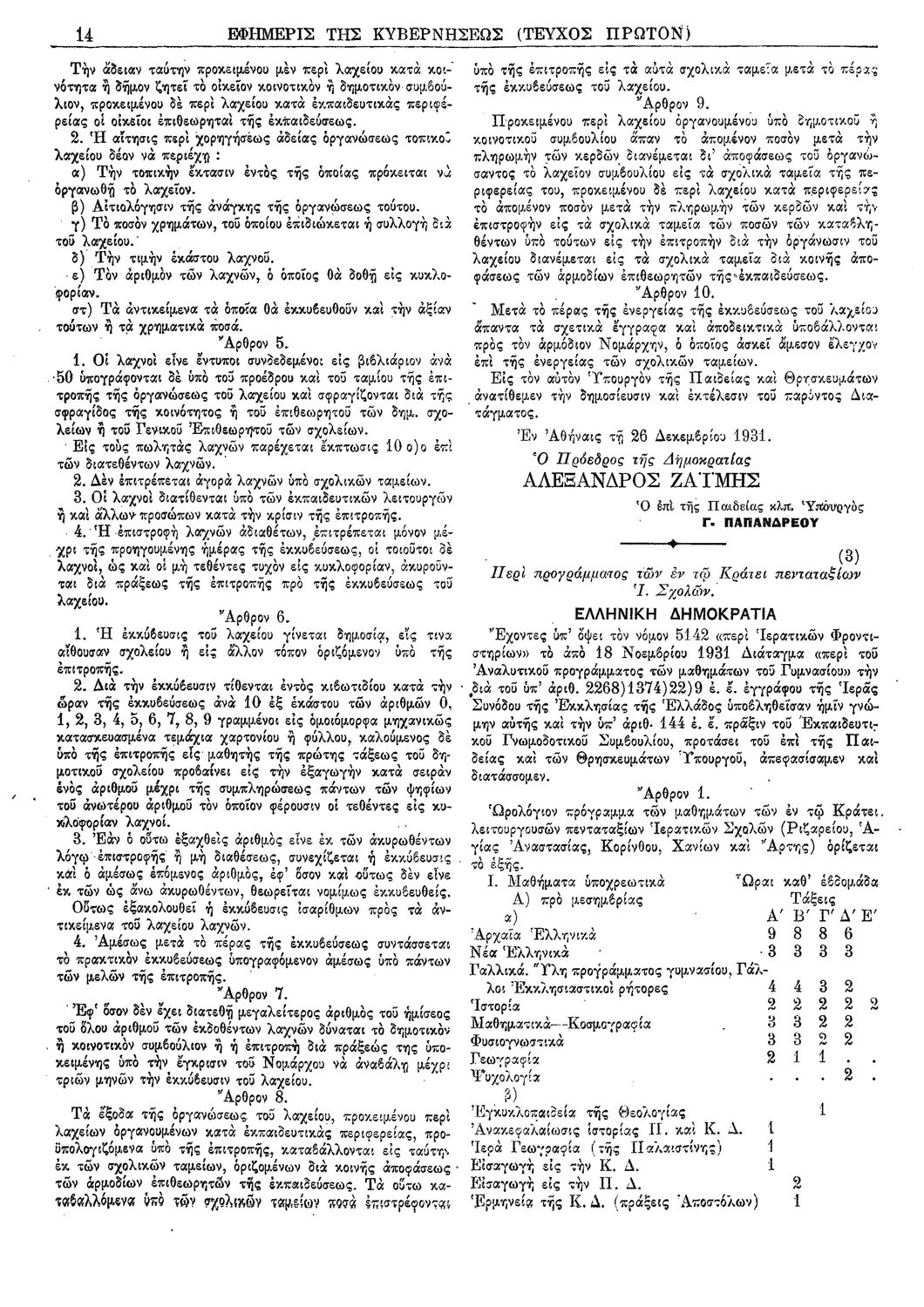 Παρουσίαση περιεχομένου: Δ. Περί προγράμματος των εν τω Κράτει πενταταξίων Ιερατικών Σχολών Σχετικές σελίδες: 1-3 |