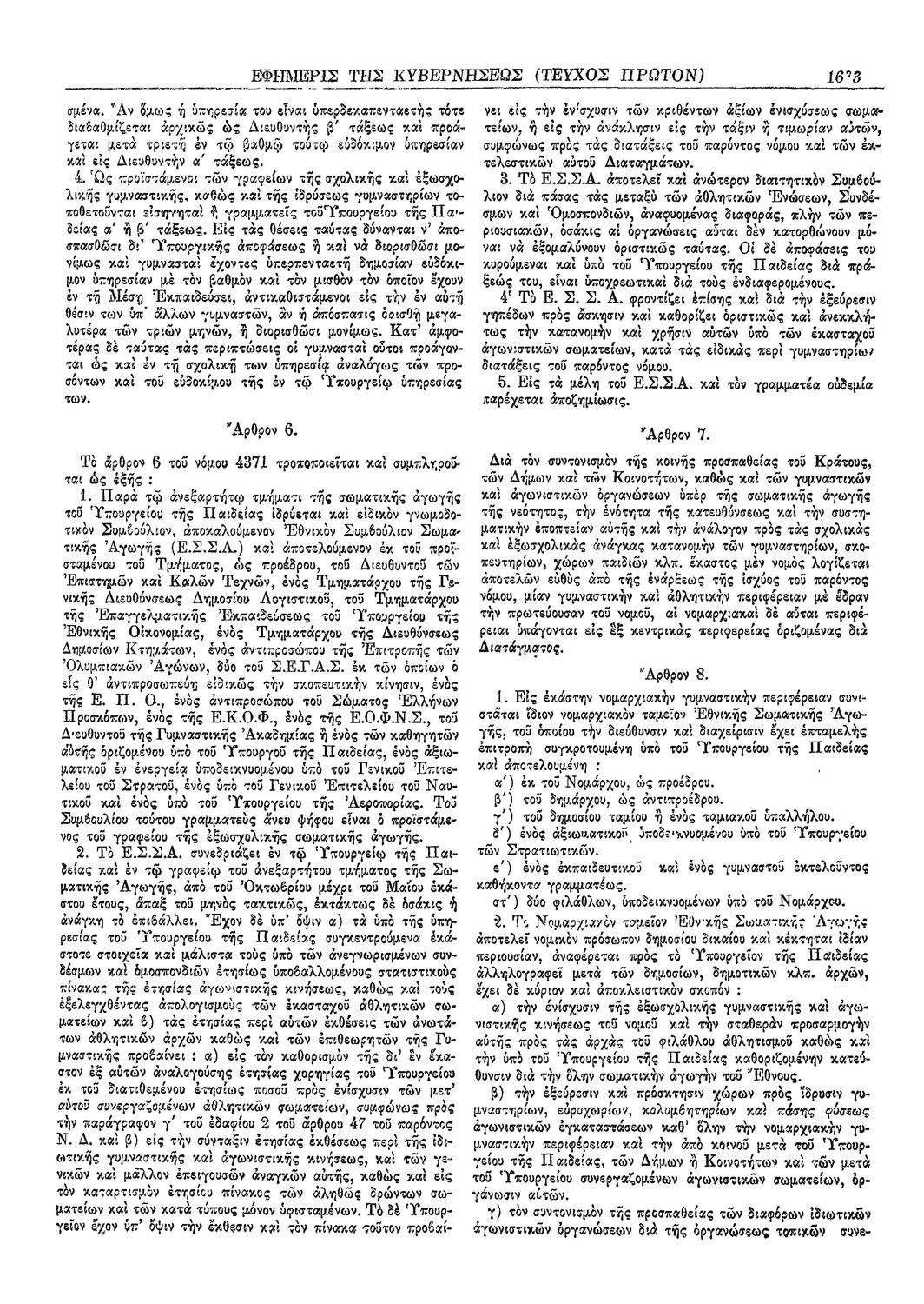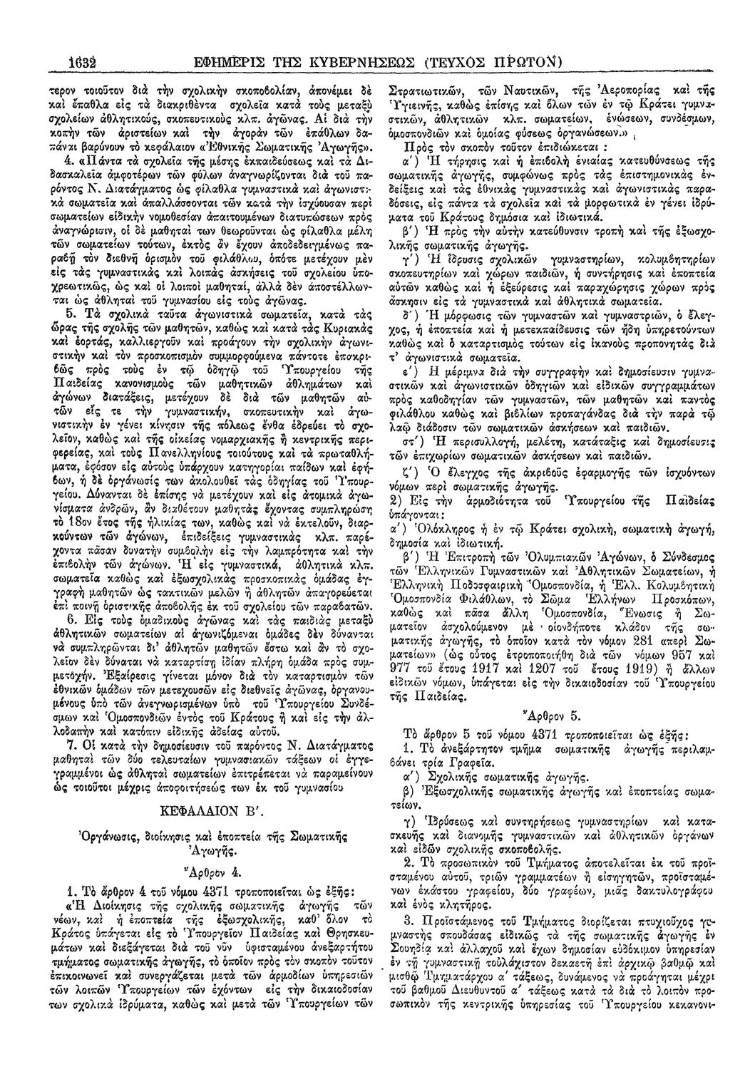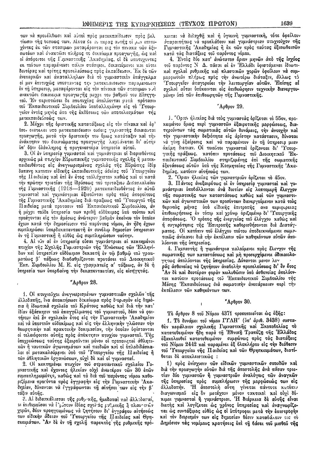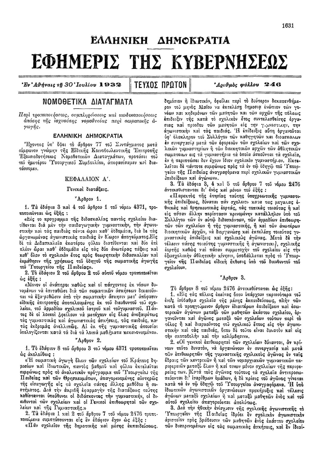 Ν.Δ. Περί τροποποιήσεως, συμπληρώσεως και κωδικοποιήσεως απάσης της ισχυούσης νομοθεσίας περί σωματικής αγωγής.