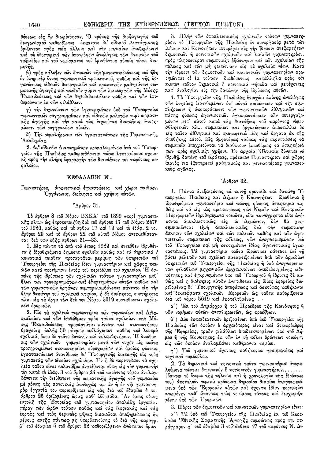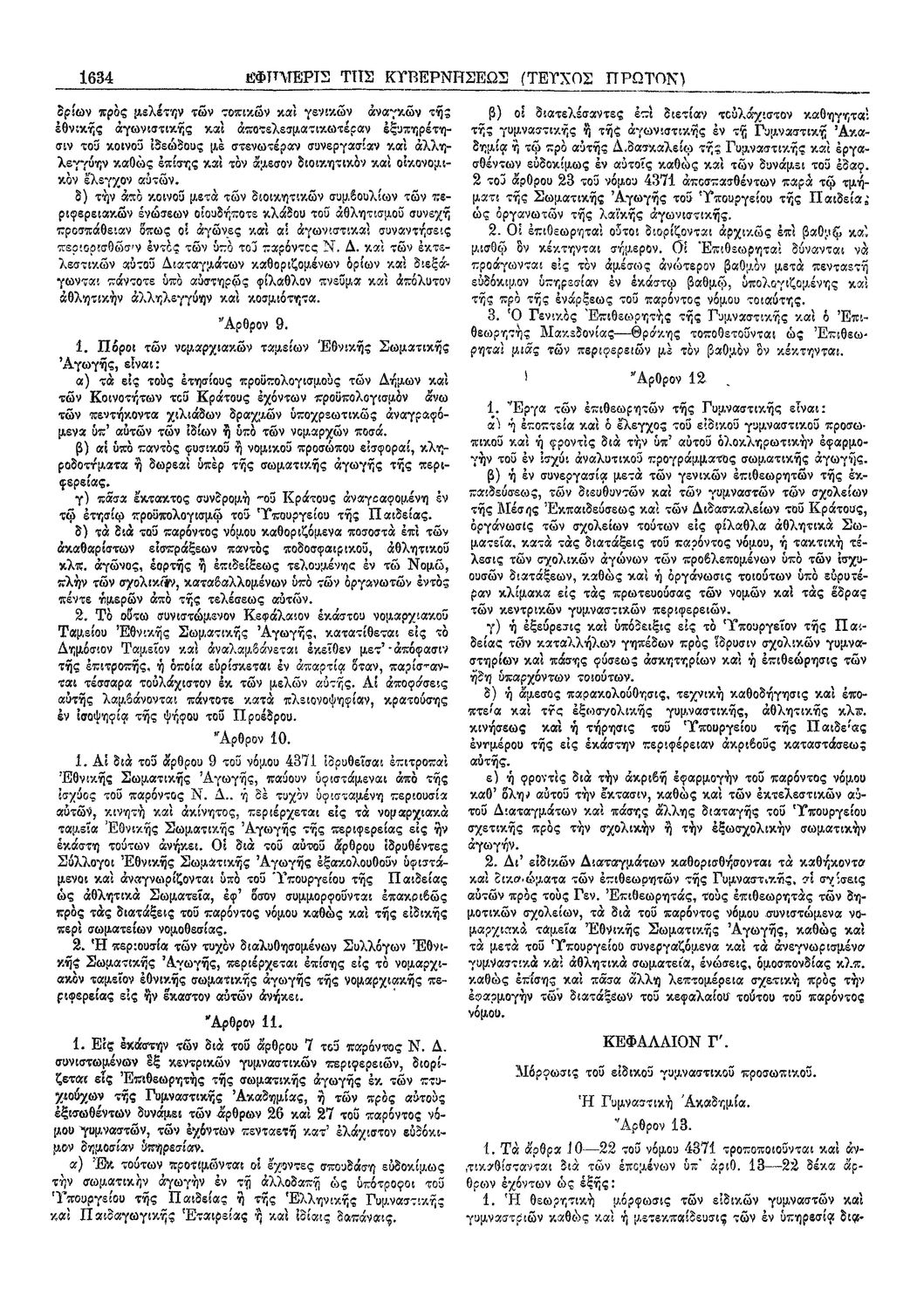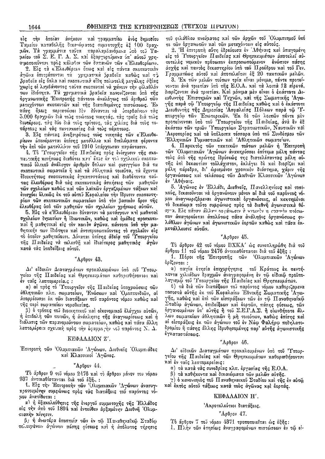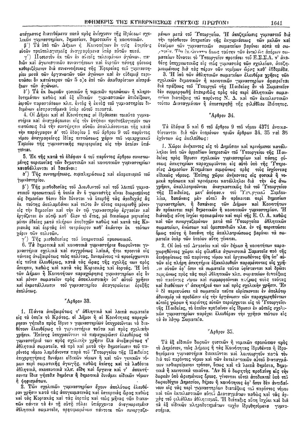 Ν.Δ. Περί τροποποιήσεως, συμπληρώσεως και κωδικοποιήσεως απάσης της ισχυούσης νομοθεσίας περί σωματικής αγωγής.