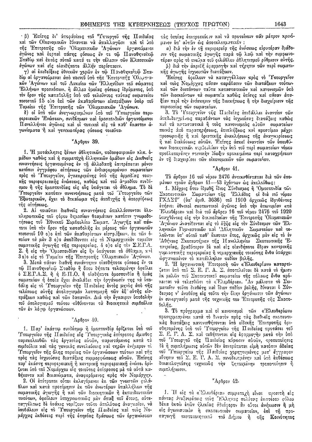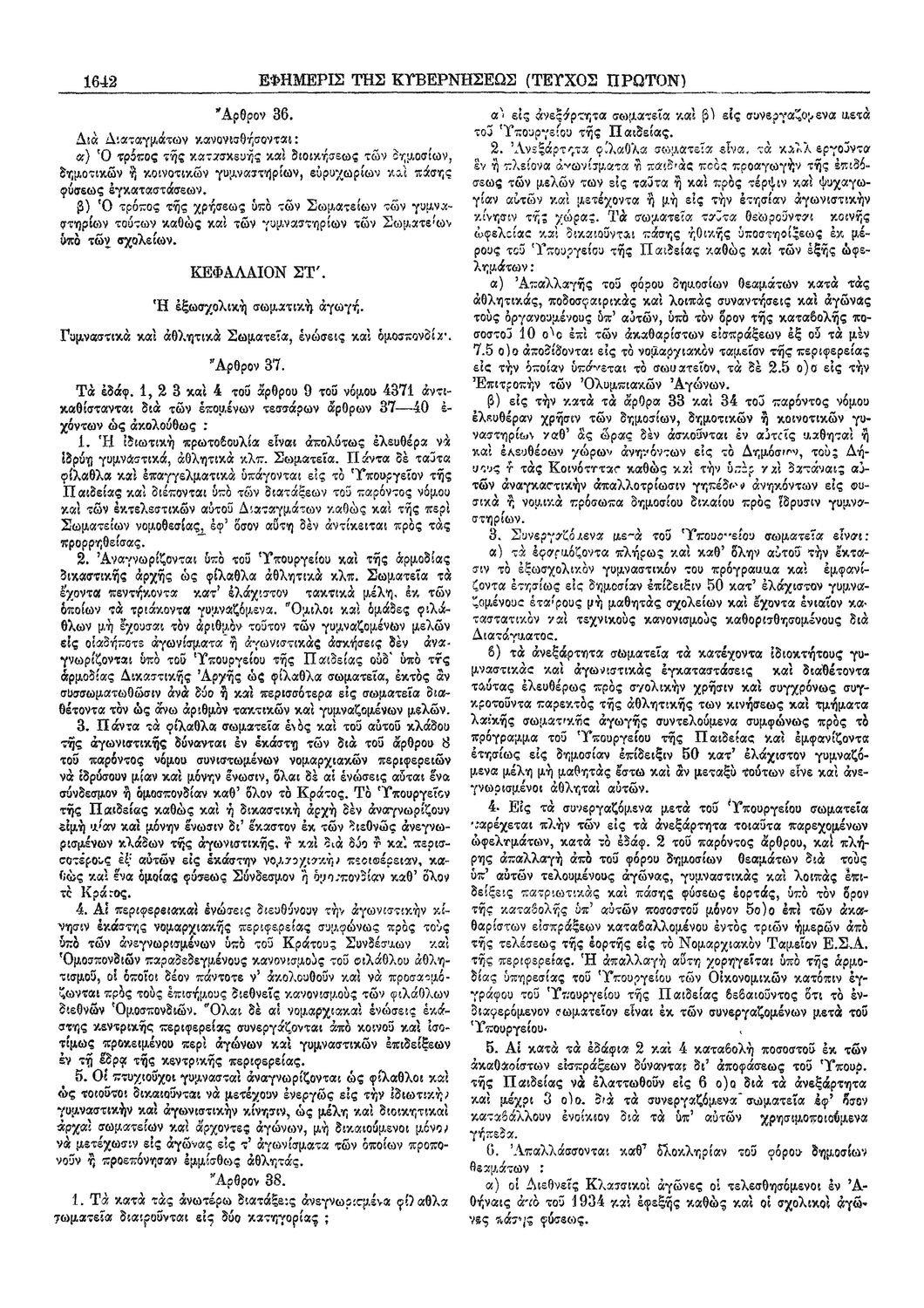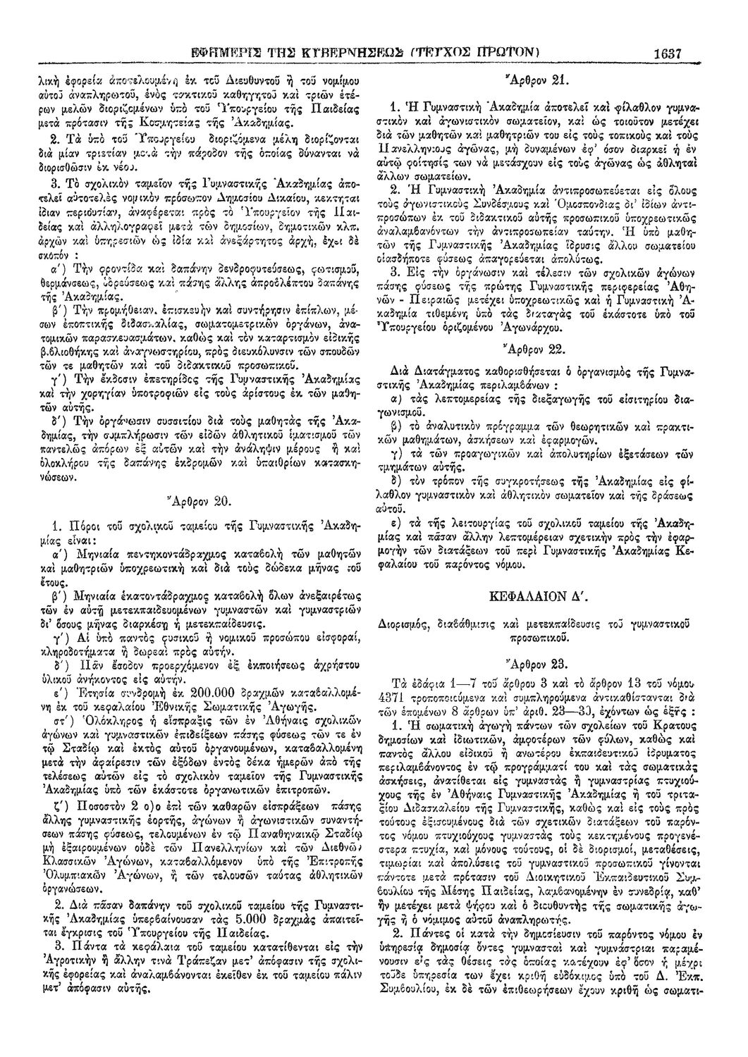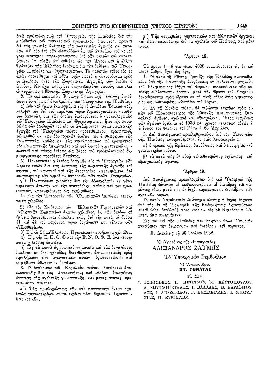 Ν.Δ. Περί τροποποιήσεως, συμπληρώσεως και κωδικοποιήσεως απάσης της ισχυούσης νομοθεσίας περί σωματικής αγωγής.