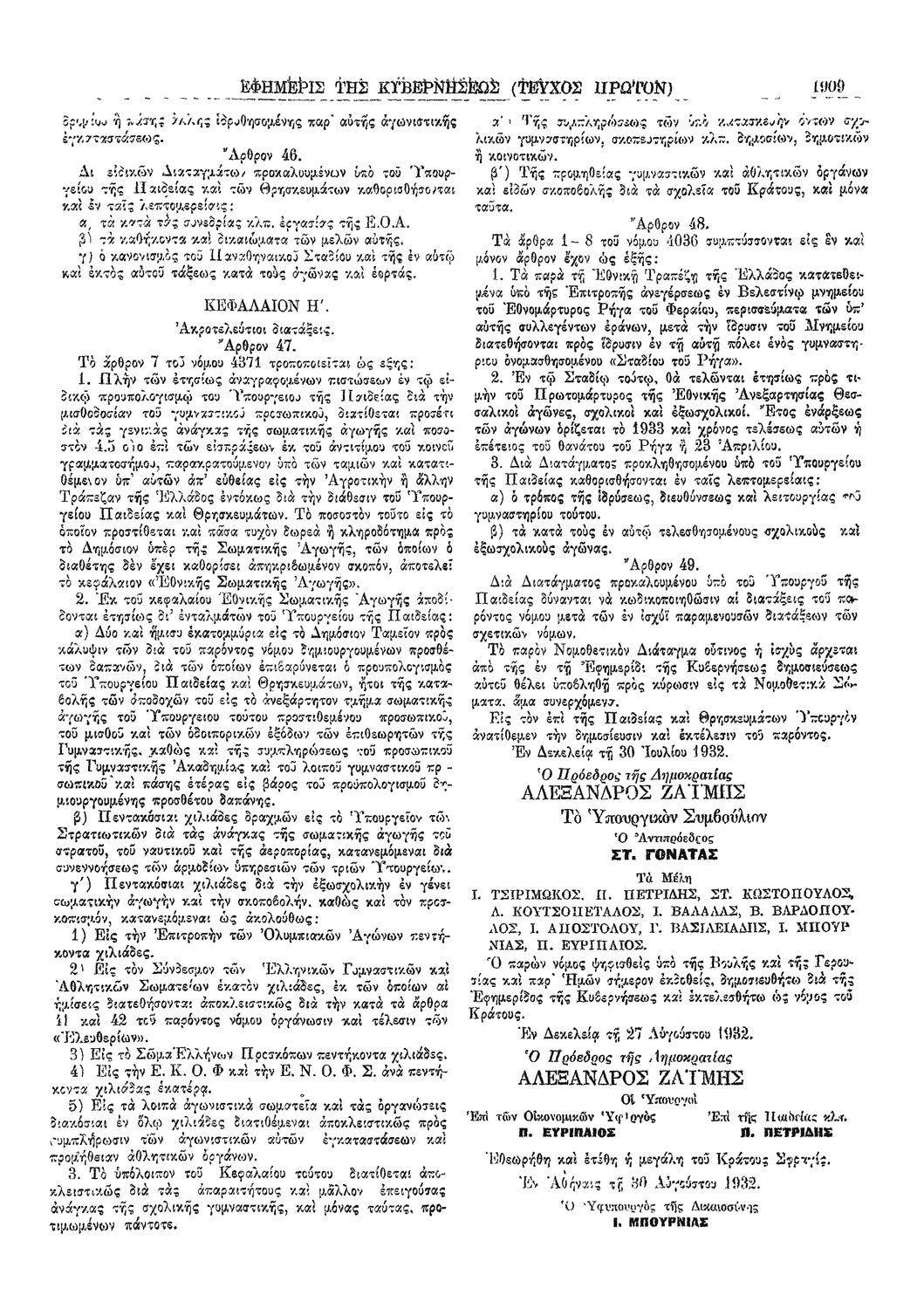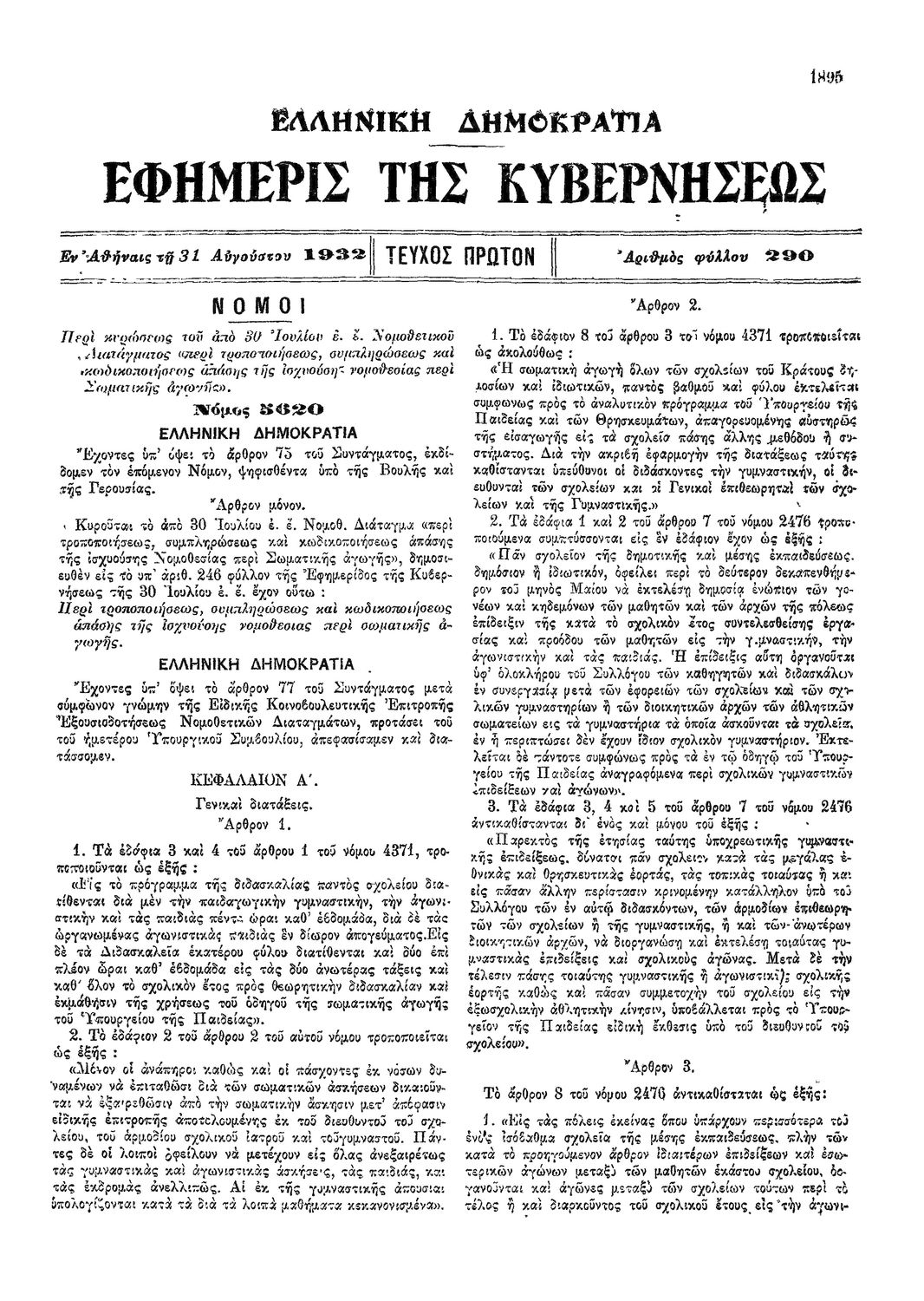 Νόμος 5620 Περί κυρώσεως του 30 Ιουλίου Ν.Δ περί τροποιήσεως και συμπληρώσεως και κωδικοποιήσεως απάσης της ισχυούσις νομοθεσίας περί σωματικής αγωγής