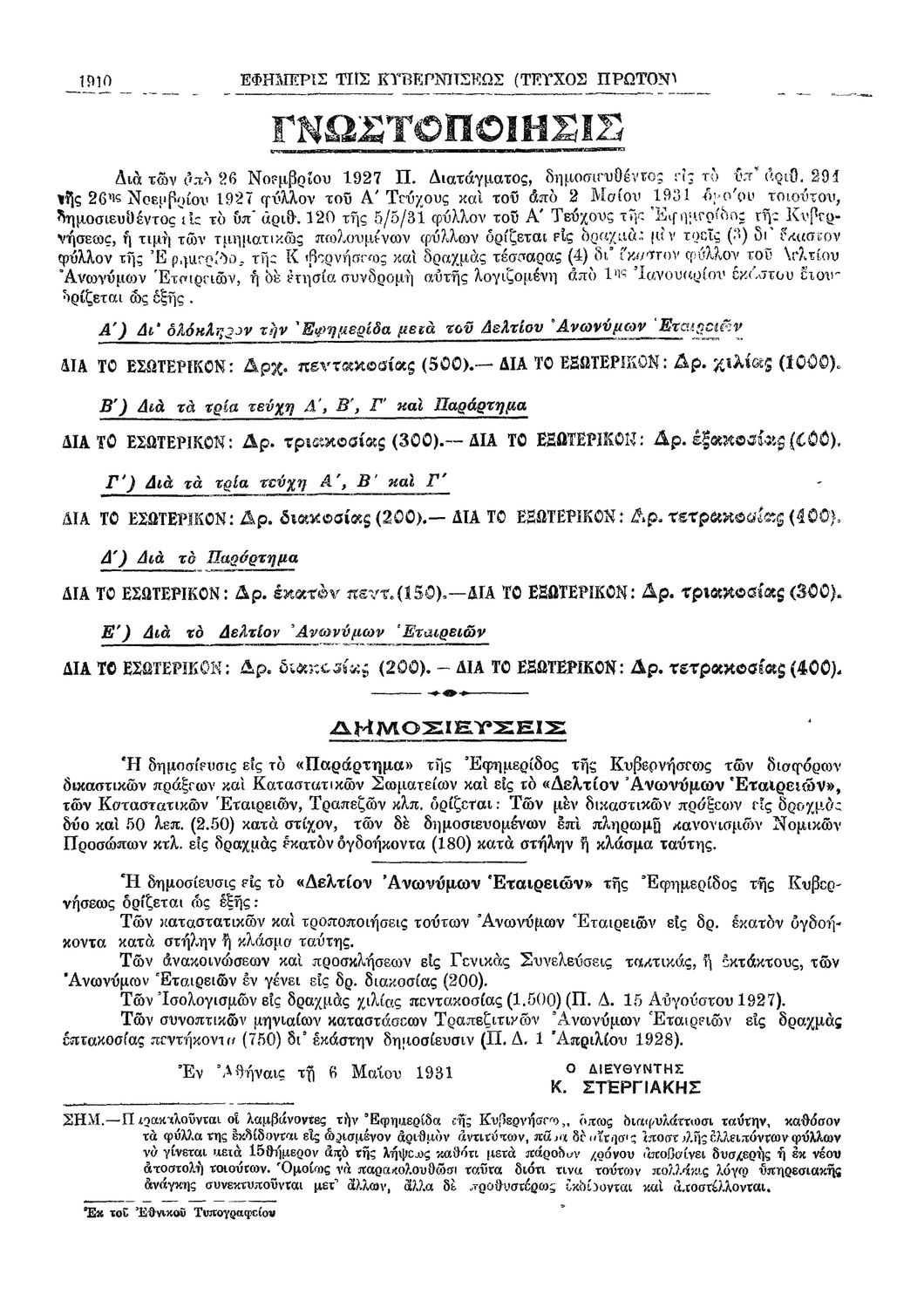 Κωδικός αναγνώρισης: 1932-290A Τίτλος: ΦΕΚ 290/31.08.1932, Τεύχος Α Μέγεθος και υπόστρωμα: Φεκ προγραμμάτων σπουδών, 15 σελίδες. |