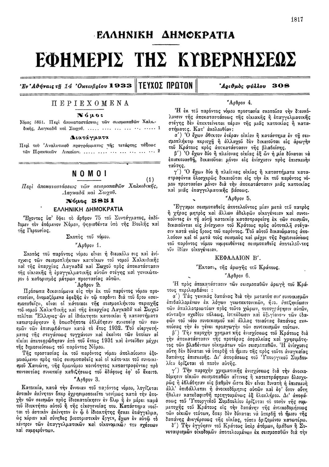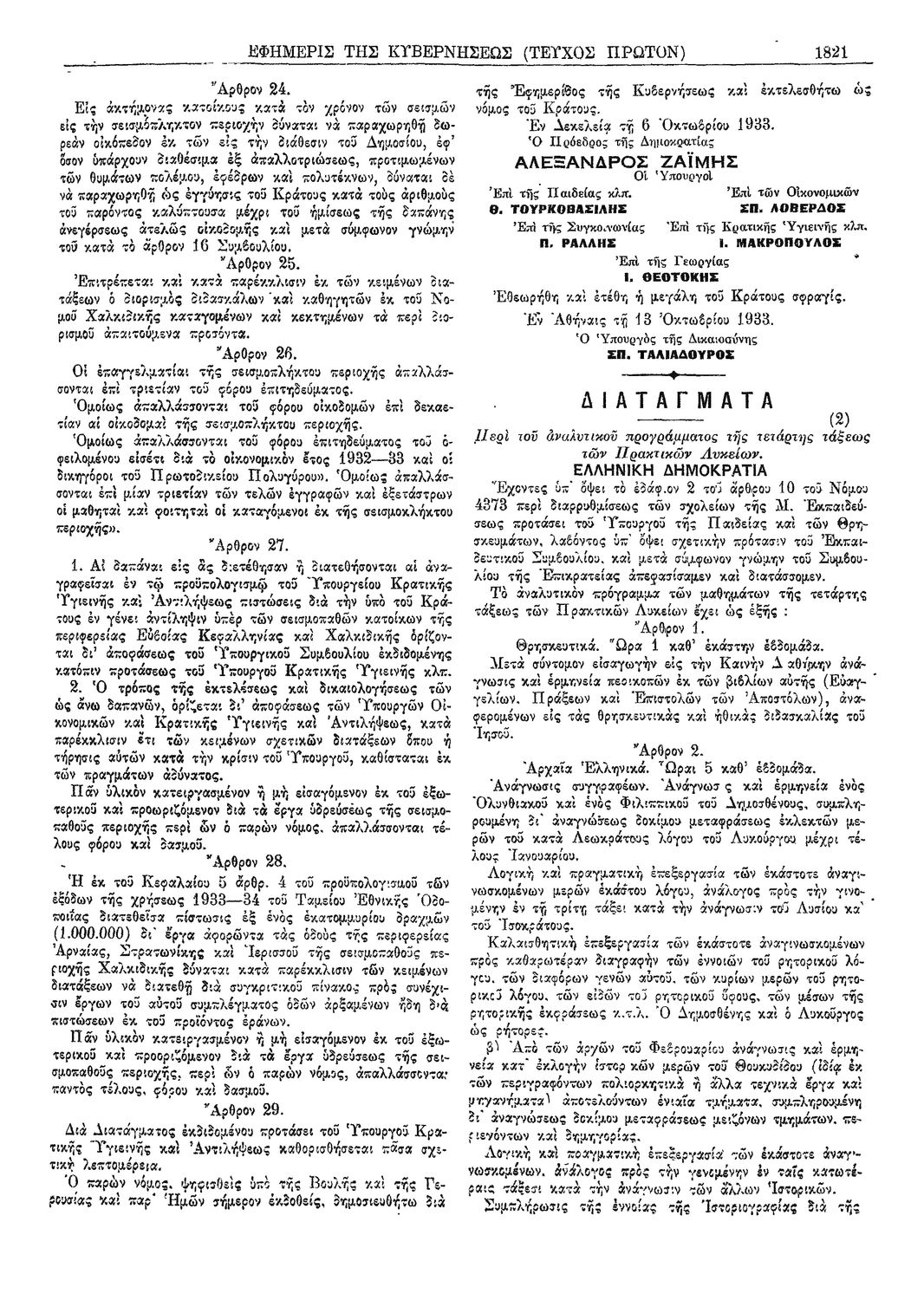 Κωδικός αναγνώρισης: 1933-308A Τίτλος: ΦΕΚ 308/14.10.1933, Τεύχος Α Μέγεθος και υπόστρωμα: Φεκ προγραμμάτων σπουδών, 5 σελίδες. |