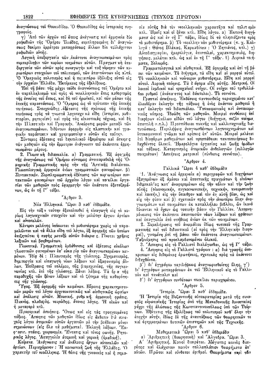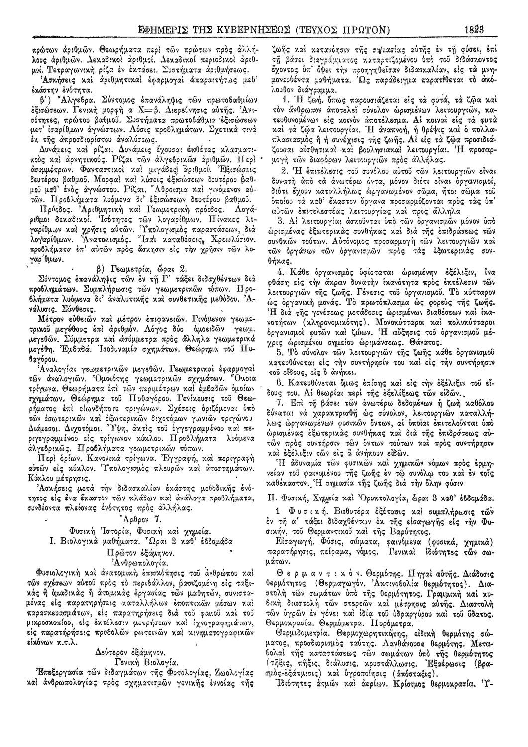 Δ. Περί του αναλυτικού προγράμματος της τετάρτης τάξεως των Πρακτικών Λυκείων