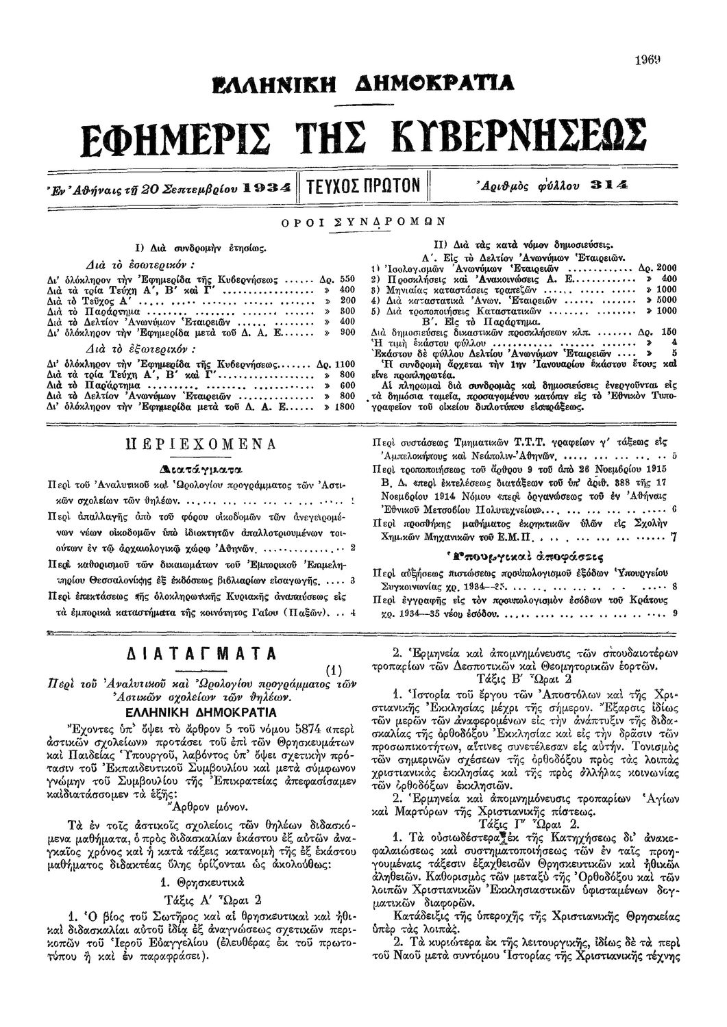 Κωδικός αναγνώρισης: 1934-314A Τίτλος: ΦΕΚ 314/20.09.1934, Τεύχος Α Μέγεθος και υπόστρωμα: Φεκ προγραμμάτων σπουδών, 6 σελίδες. |