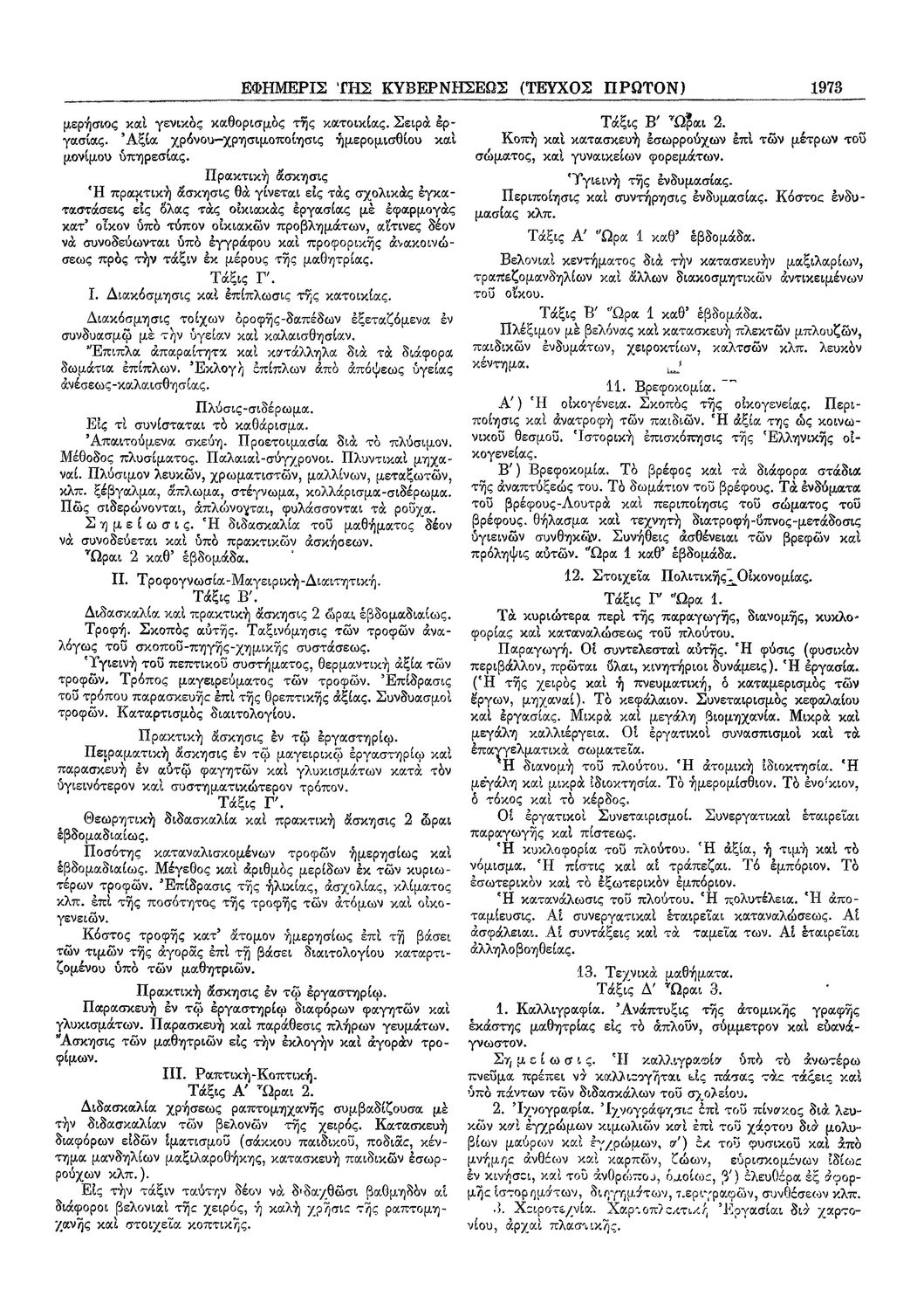 Δ. Περί του Αναλυτικού και Ωρολογίου προγράμματος των Αστικών σχολείων των θηλέων