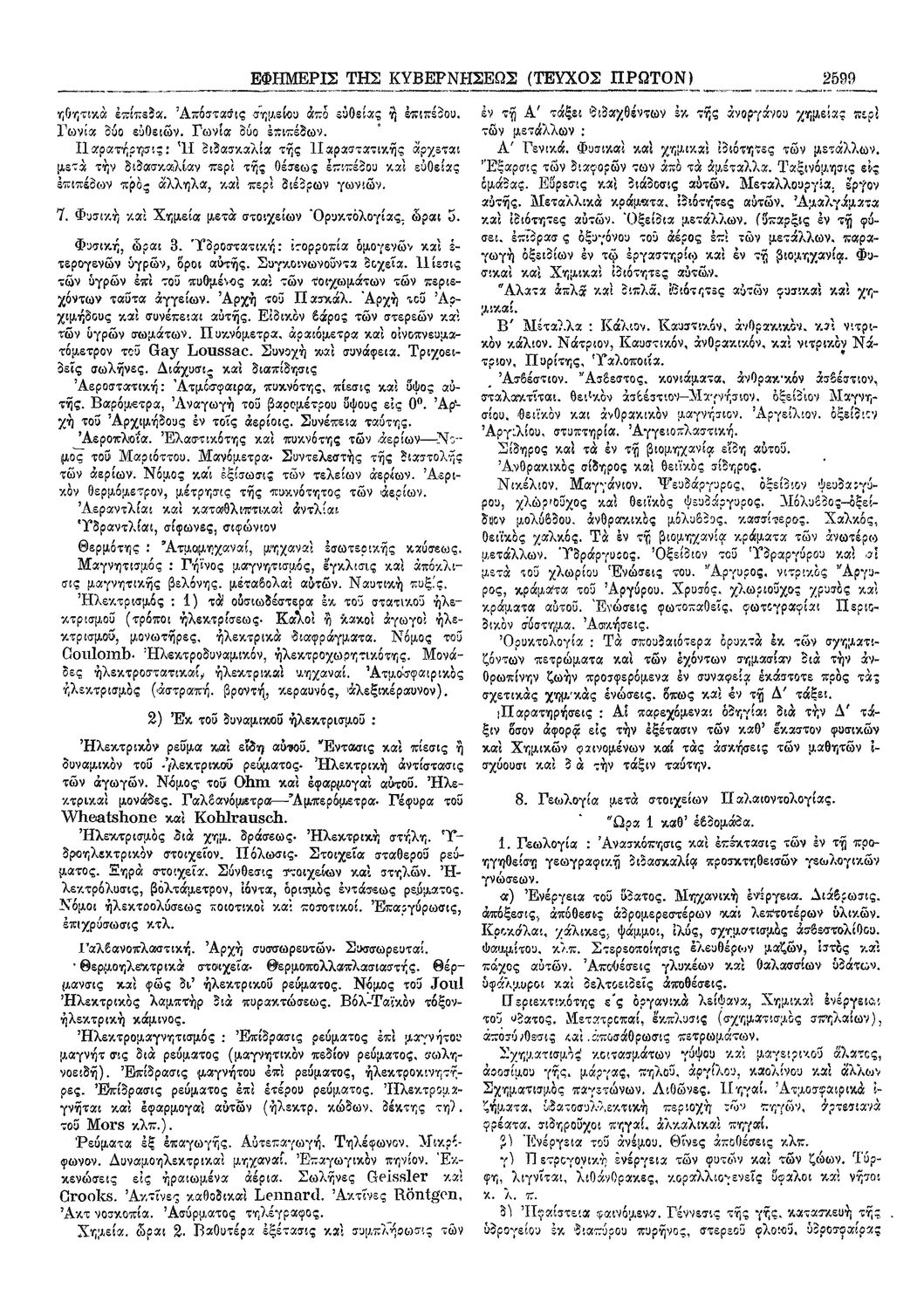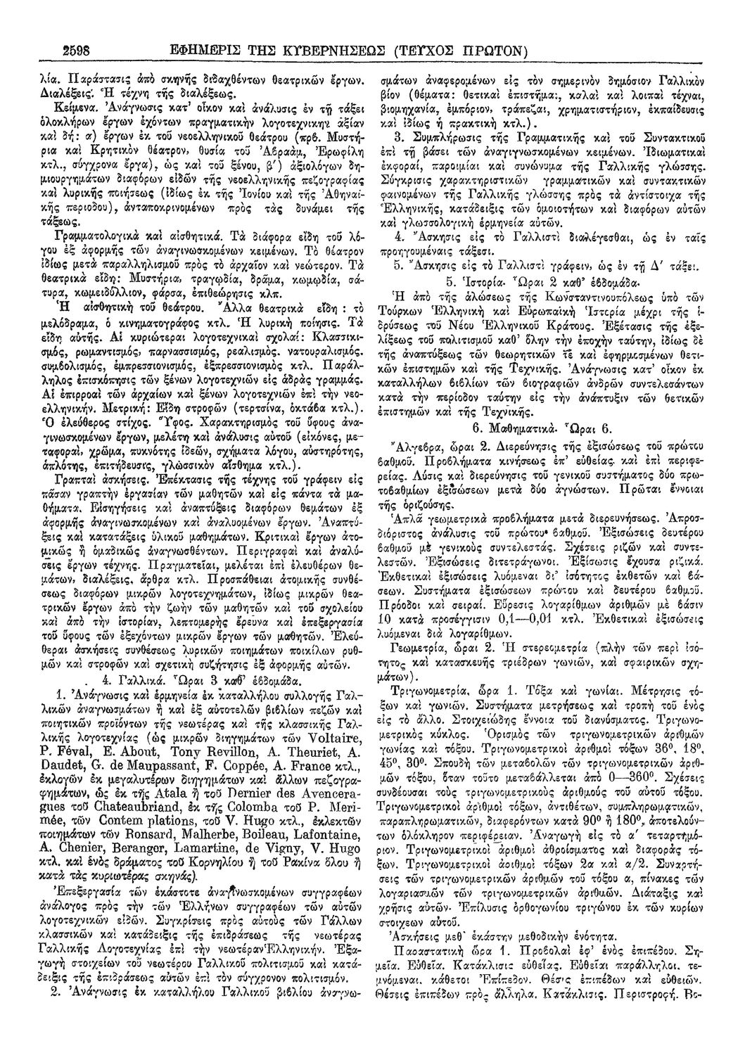 Δ. Περί του Αναλυτικού Προγράμματος της πέμπτης τάξεως των Πρακτικών Λυκείων