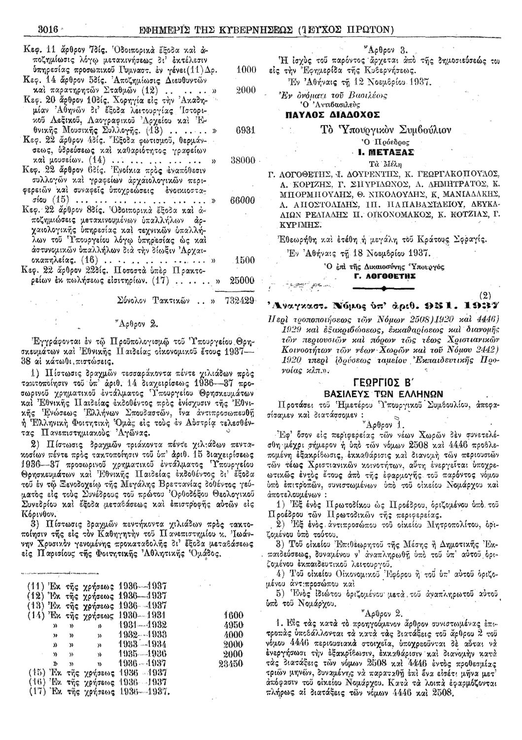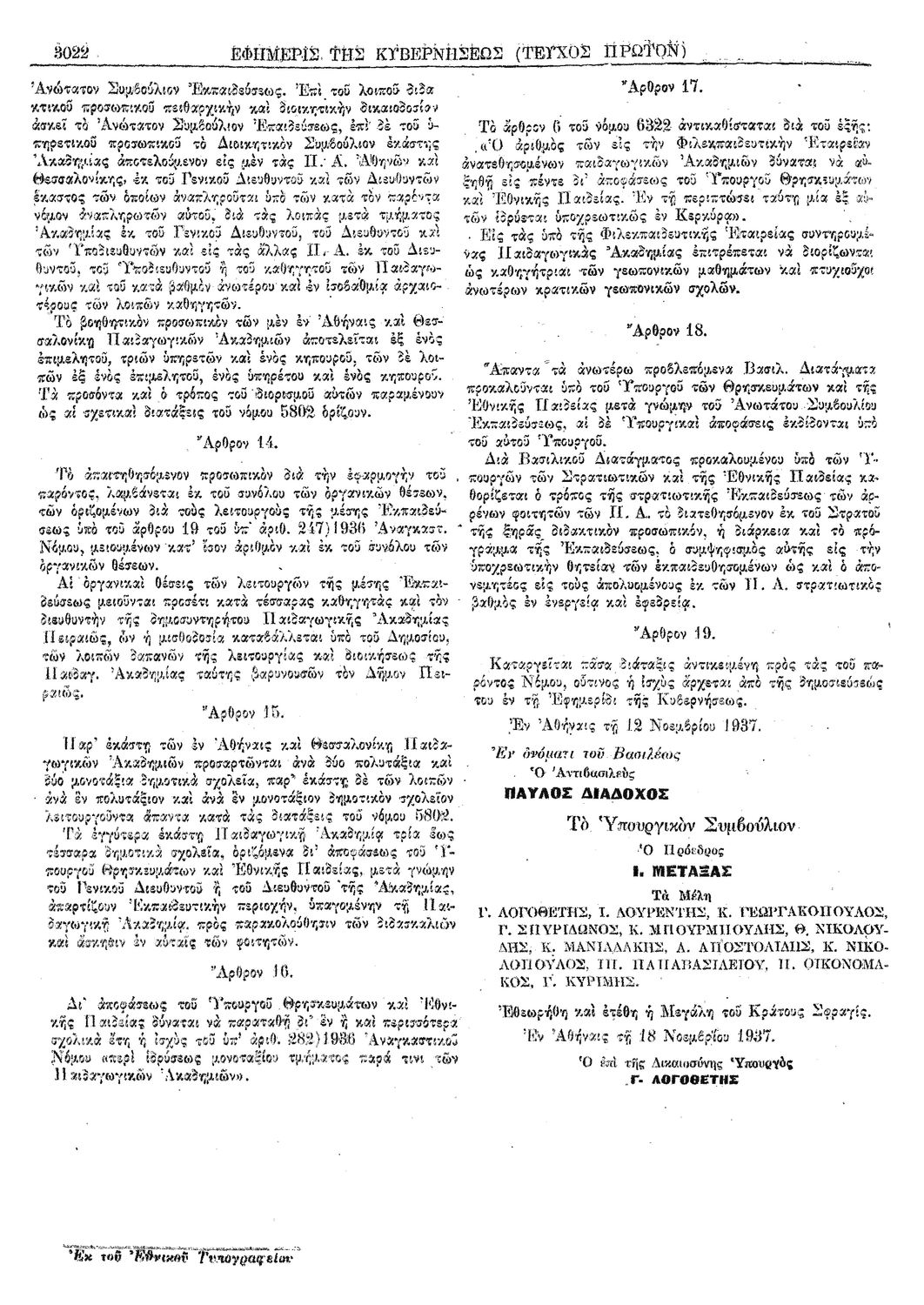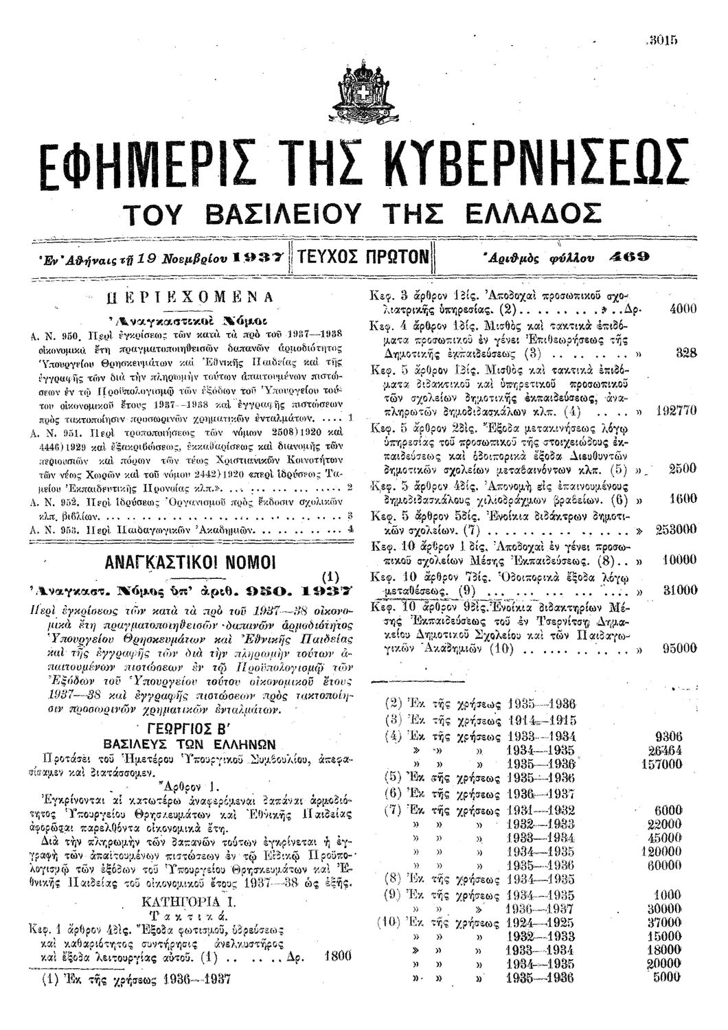 Κωδικός αναγνώρισης: 1937-469A Τίτλος: ΦΕΚ 469/19.11.1937, Τεύχος Α Μέγεθος και υπόστρωμα: Φεκ προγραμμάτων σπουδών, 4 σελίδες. |