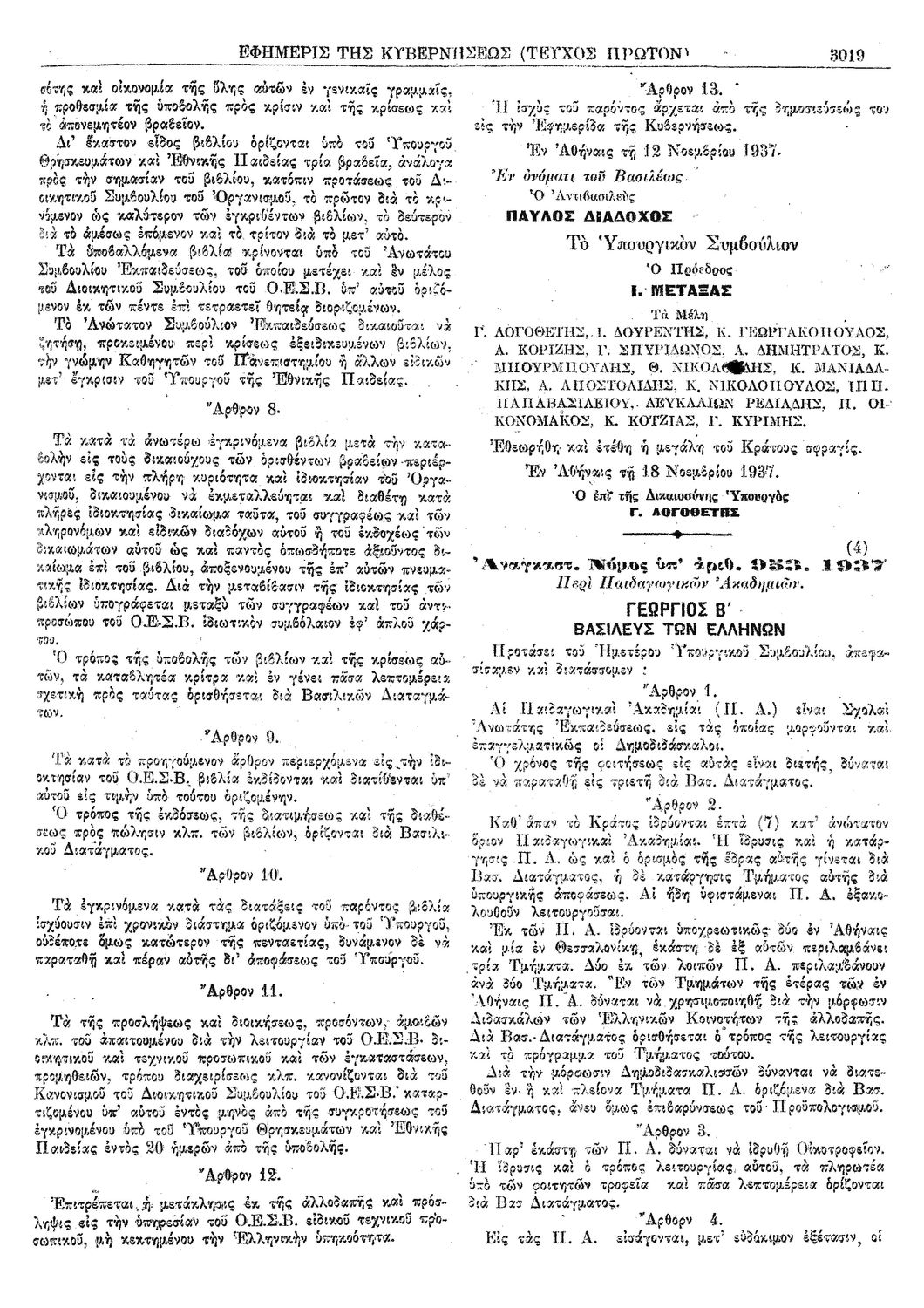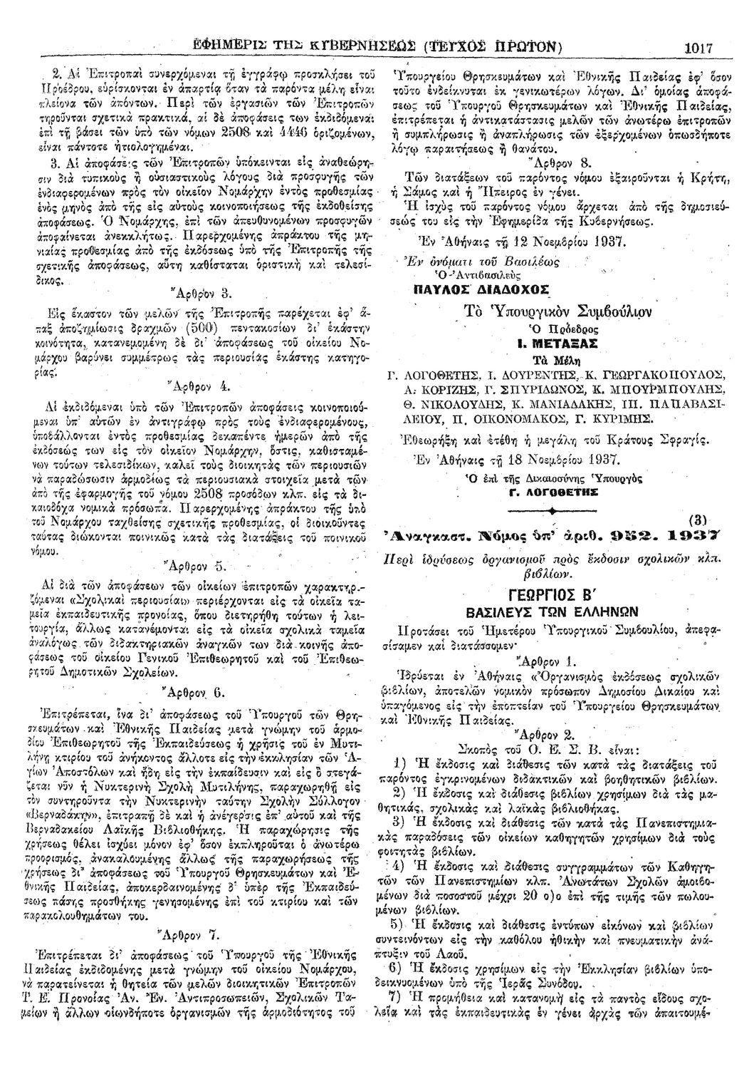 Α.Ν. 952 Περί ιδρύσεως οργανισμού προς έκδοσιν σχολικών κλπ. βιβλίων