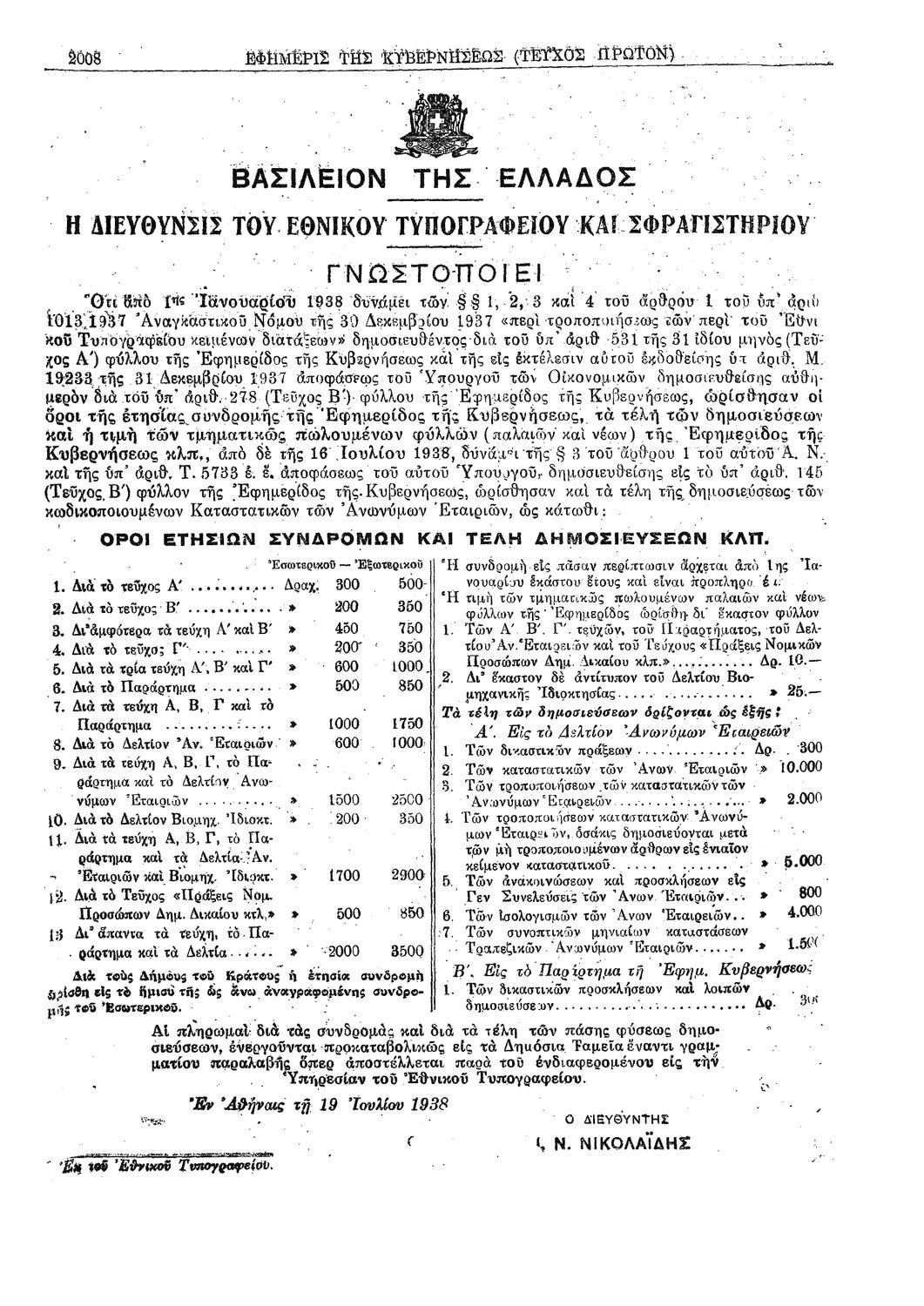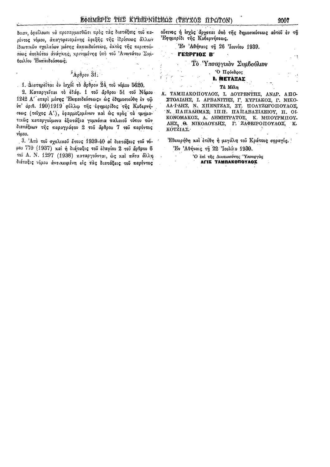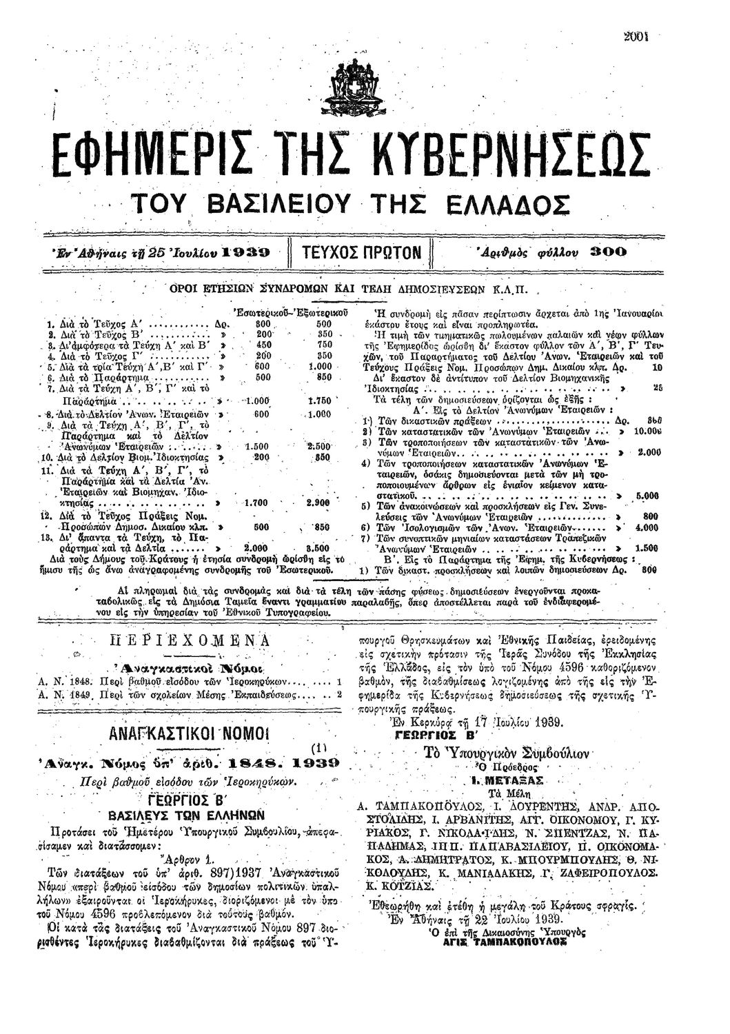 Κωδικός αναγνώρισης: 1939-300A Τίτλος: ΦΕΚ 300/26.07.1939, Τεύχος Α Μέγεθος και υπόστρωμα: Φεκ προγραμμάτων σπουδών, 7 σελίδες. |