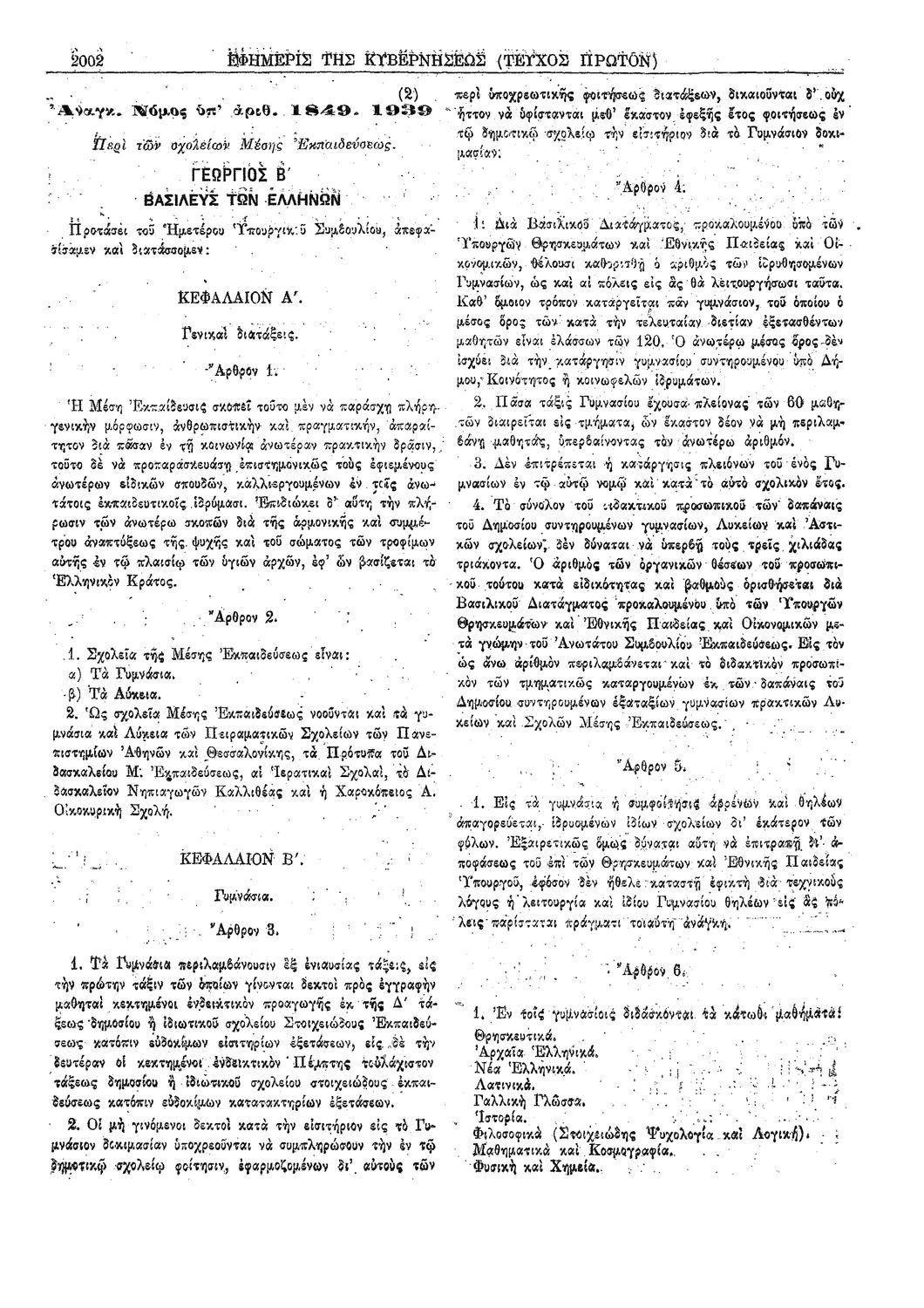 Παρουσίαση περιεχομένου: Α.Ν. 1849 Περί των σχολείων της Μέσης Εκπαιδεύσεως Σχετικές σελίδες: 1-7 |