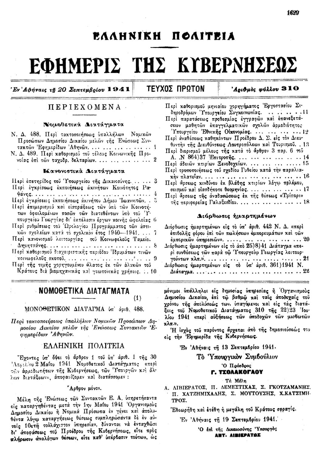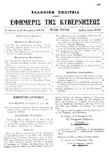 Κωδικός αναγνώρισης: 1941-310A Τίτλος: ΦΕΚ 310/20.09.1941, Τεύχος A Μέγεθος και υπόστρωμα: Φεκ προγραμμάτων σπουδών, 2 σελίδες. |