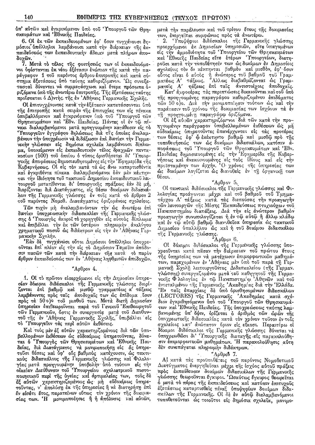 Κ.Δ. Περί της εισαγωγής της διδασκαλίας της Γερμανικής γλώσσης ως υποχρεωτικού μαθήματος εις τα σχολεία της Μέσης Εκπαιδεύσεως, τας Εμπορικάς Σχολάς και τα Αστικά Σχολεία Εμπορικής κατευθύνσεως και περί του προσωπικού του διδάσκοντος τα μαθήματα ταύτα