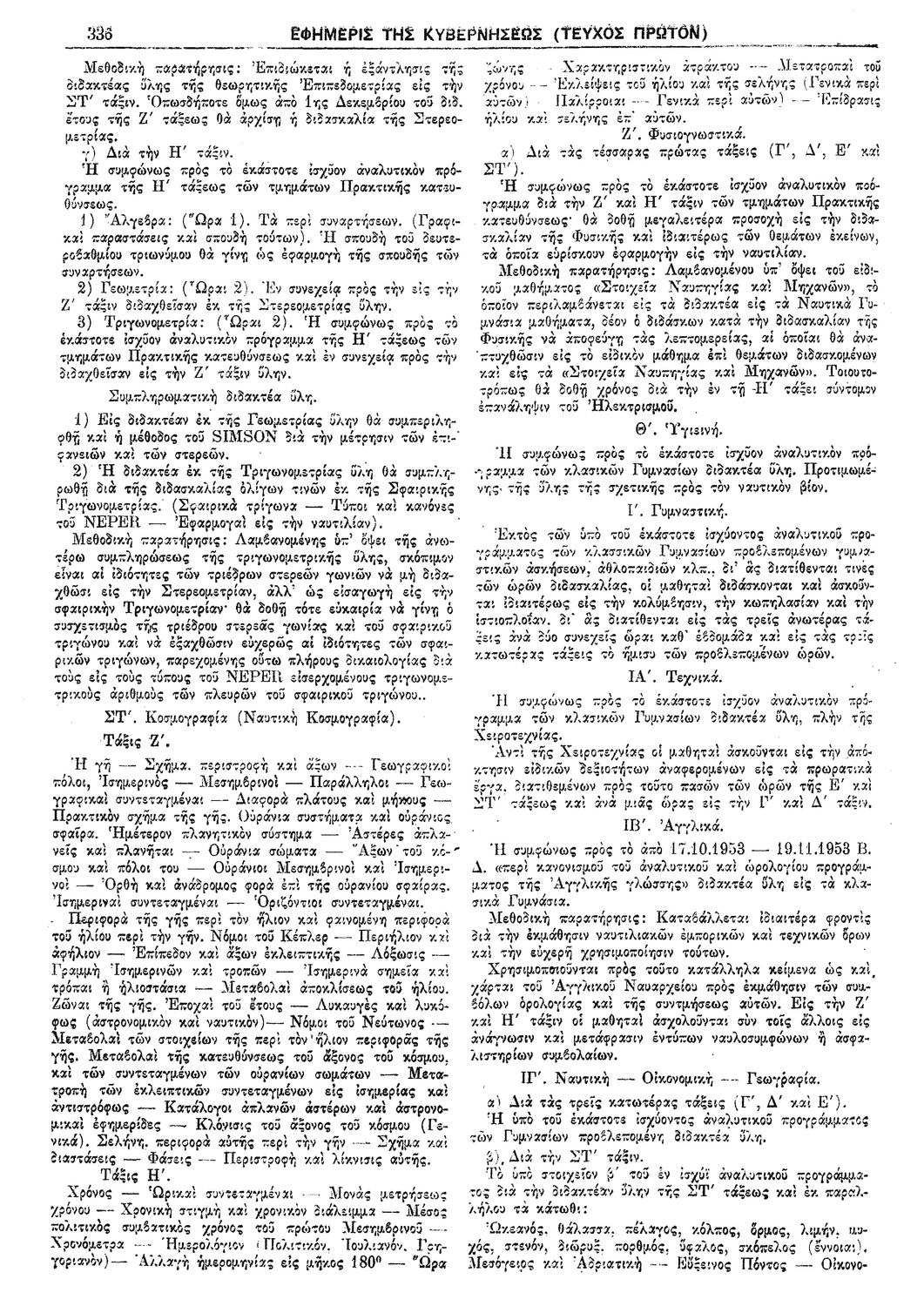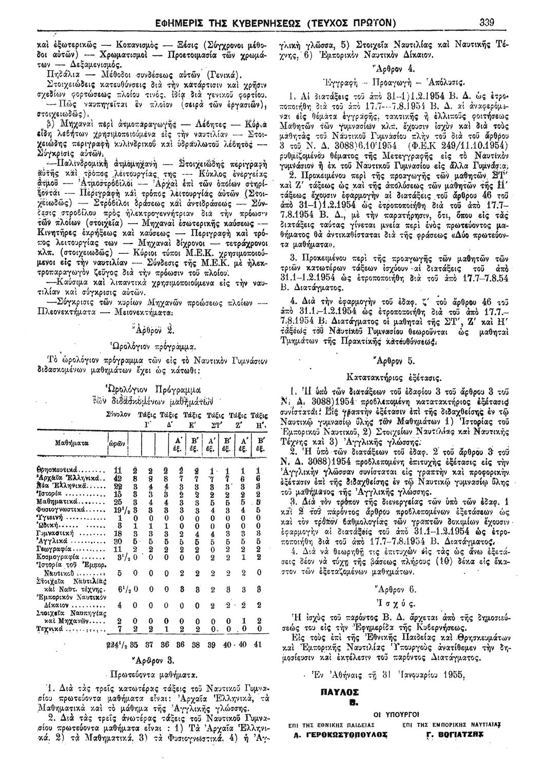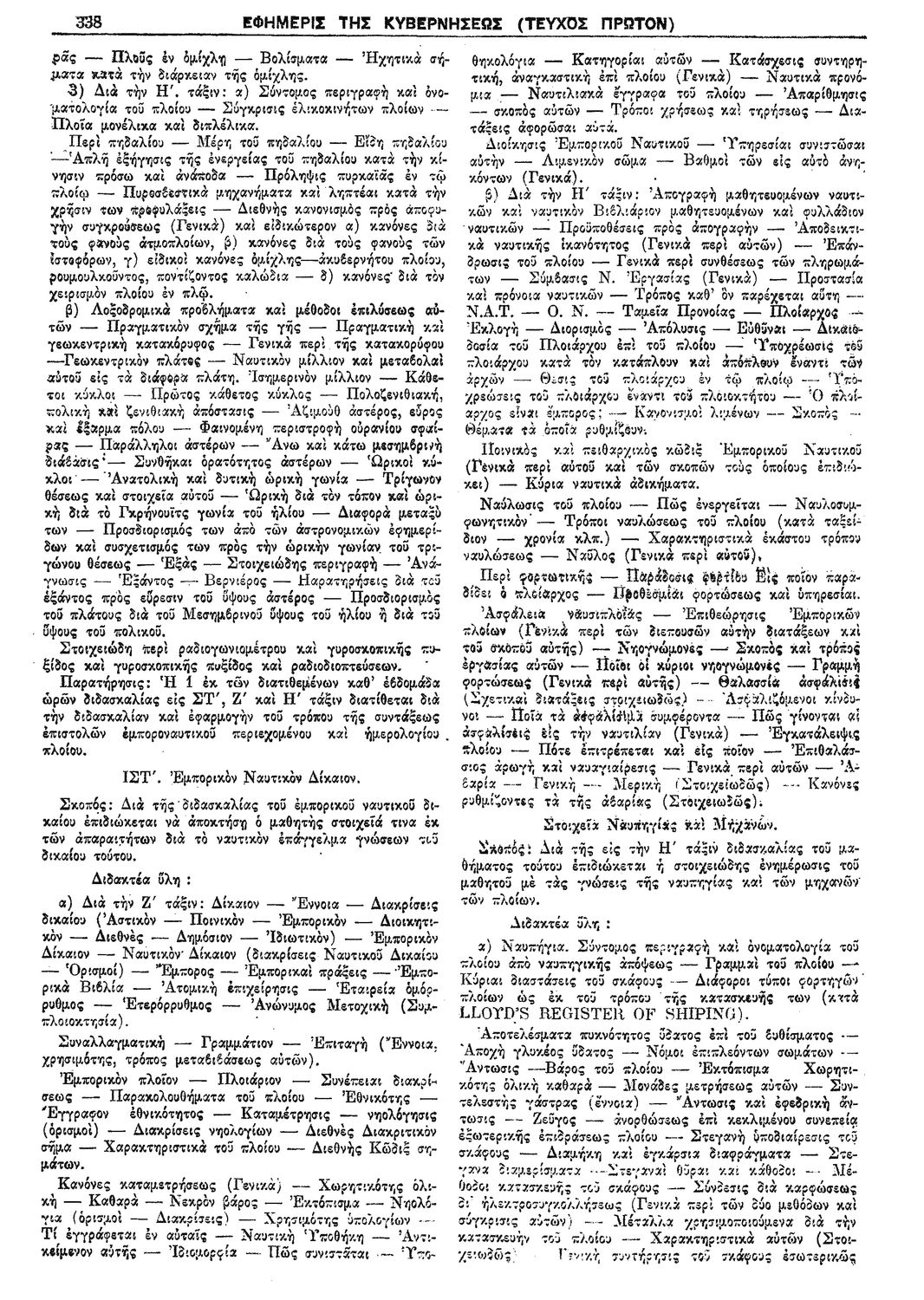 Δ. Περί αναλυτικού και ωρολογίου προγράμματος του εν Οινούσαις Ναυτικού Γυμνασίου