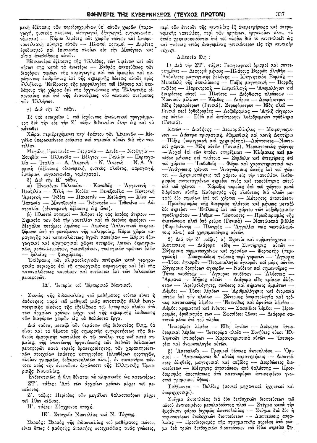 Παρουσίαση περιεχομένου: Δ. Περί αναλυτικού και ωρολογίου προγράμματος του εν Οινούσαις Ναυτικού Γυμνασίου Σχετικές σελίδες: 1-5 |
