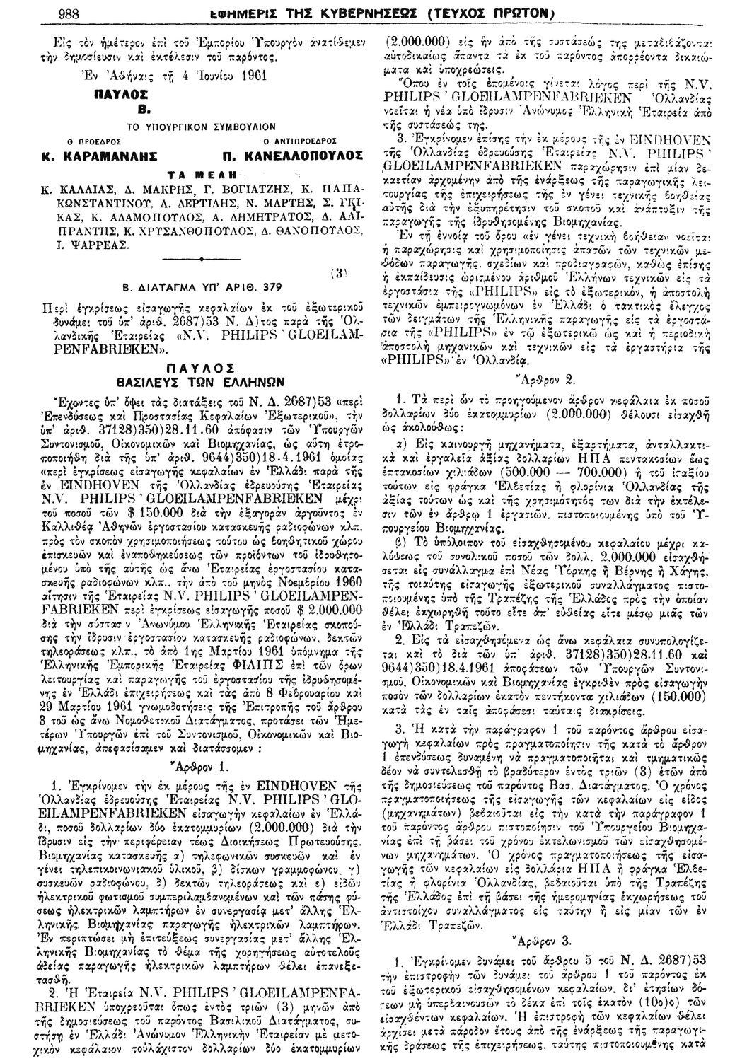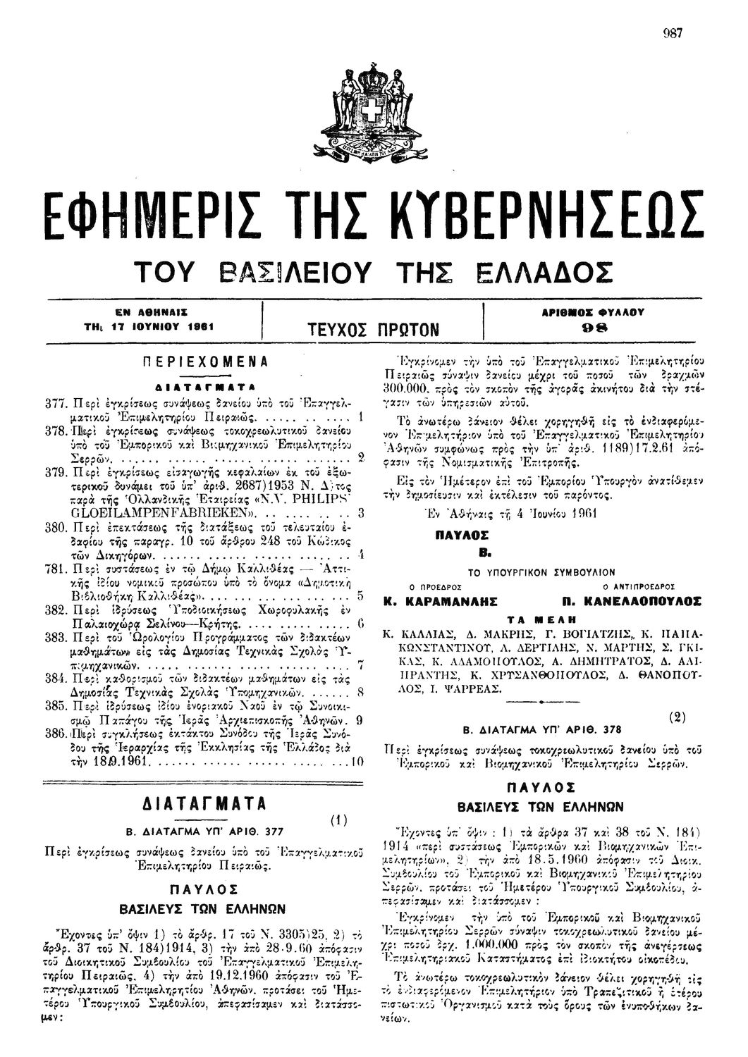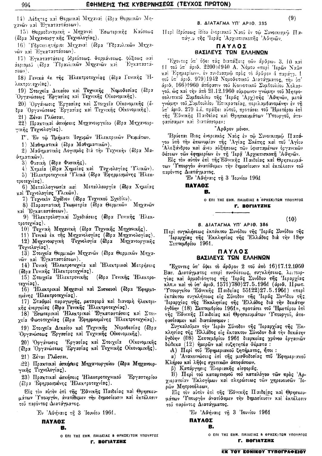 Κωδικός αναγνώρισης: 1961-098A Τίτλος: ΦΕΚ 98/17.06.1961, Τεύχος Α Μέγεθος και υπόστρωμα: Φεκ προγραμμάτων σπουδών, 3 σελίδες. |