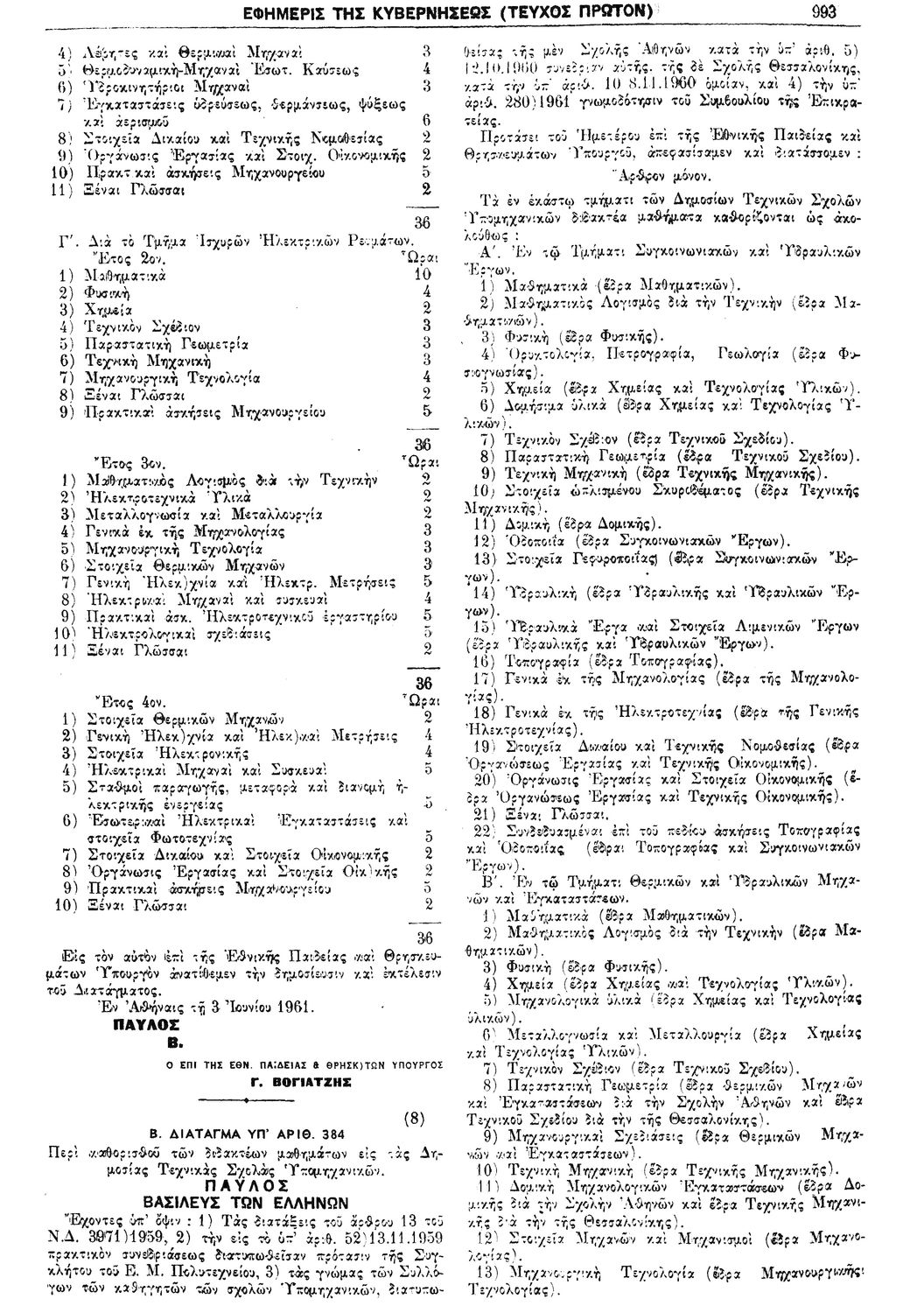 Παρουσίαση περιεχομένου: Β.Δ. 383 Περί του ωρολογίου προγράμματος των διδακτέων μαθημάτων εις τας Δημοσίας Τεχνικάς Σχολάς Υπομηχανικών Σχετικές σελίδες: 1, 6-7 |