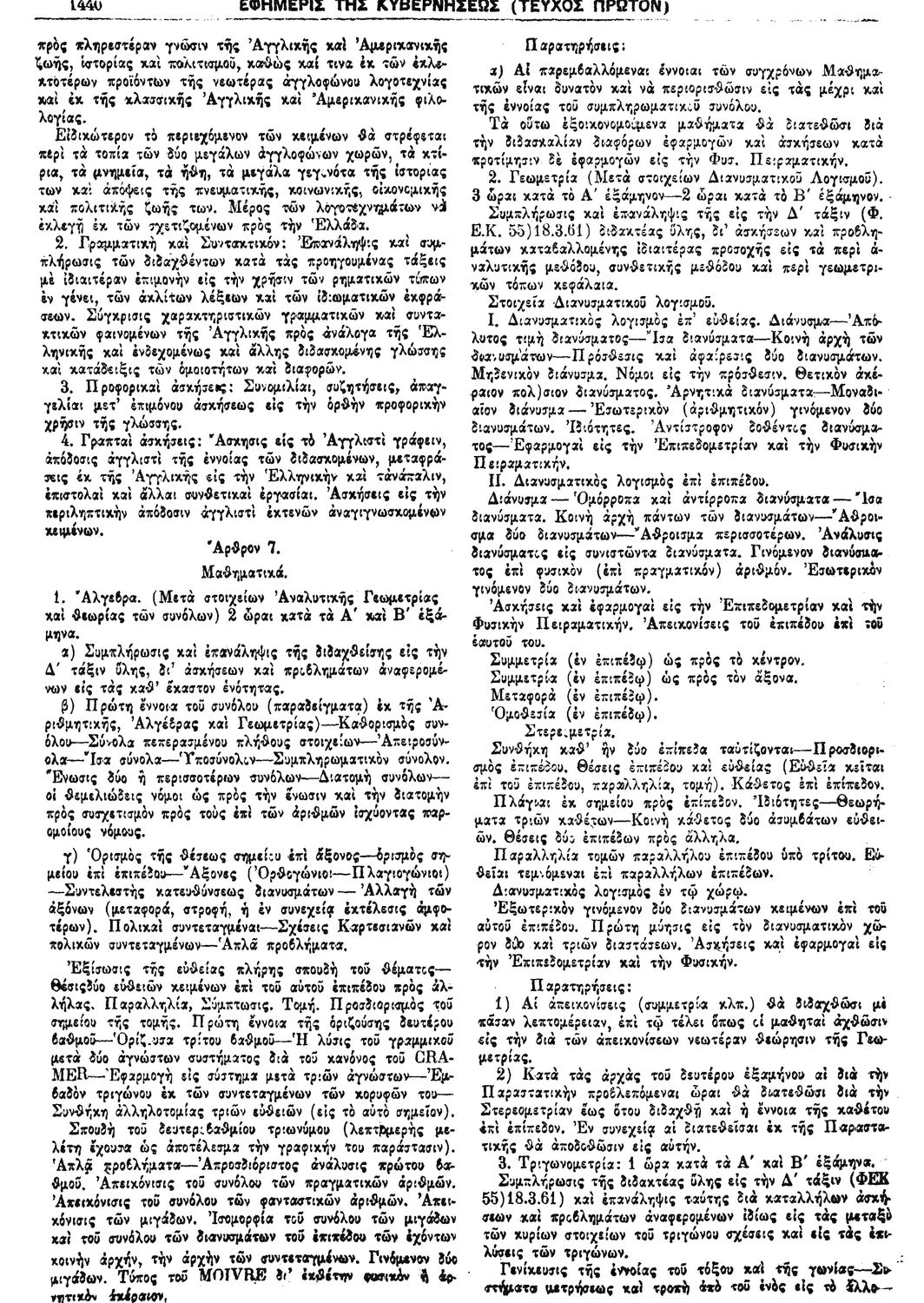 Παρουσίαση περιεχομένου: Β.Δ. 620 Περί του αναλυτικού και ωρολογίου προγράμματος της Ε' τάξεων Γυμνασίων πρακτικής κατευθύνσεως Σχετικές σελίδες: 1-4 |