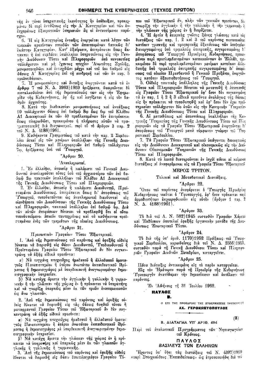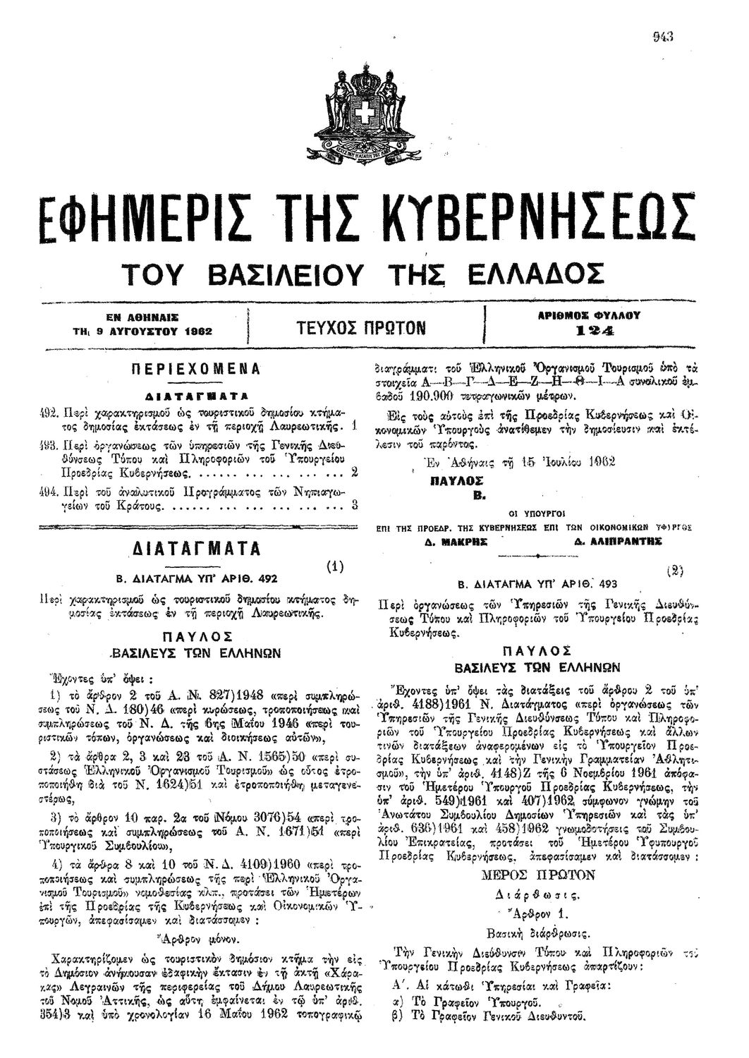 Κωδικός αναγνώρισης: 1962-124A Τίτλος: ΦΕΚ 124/09.08.1962, Τεύχος Α Μέγεθος και υπόστρωμα: Φεκ προγραμμάτων σπουδών, 5 σελίδες. |