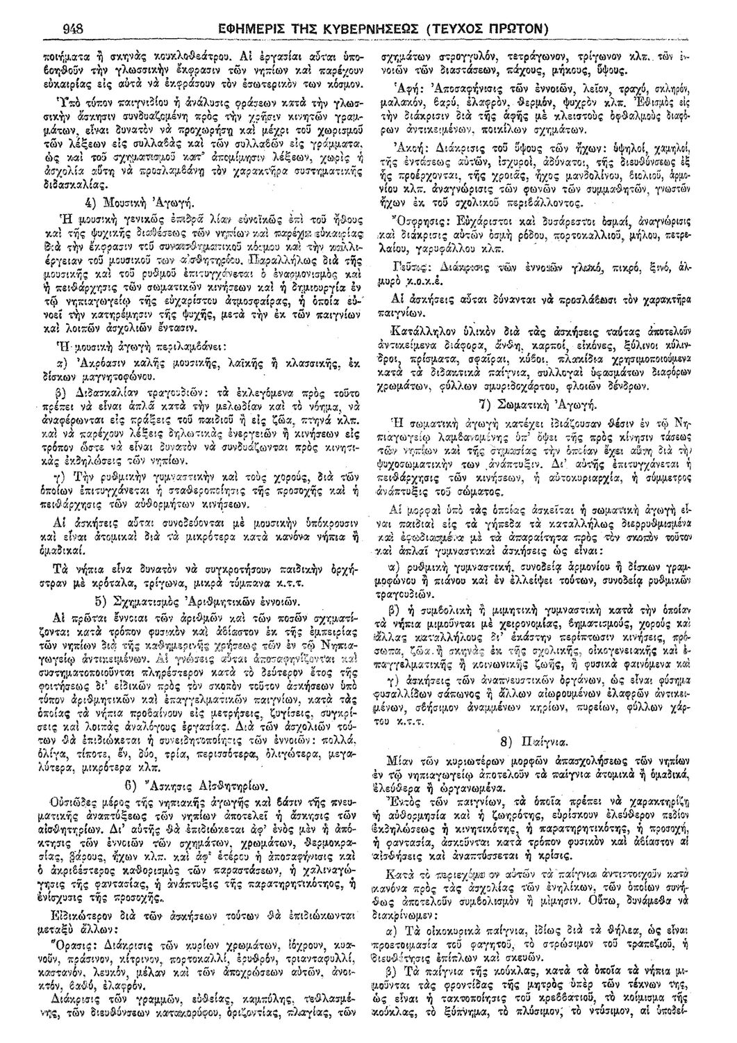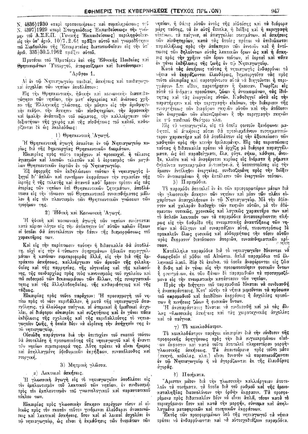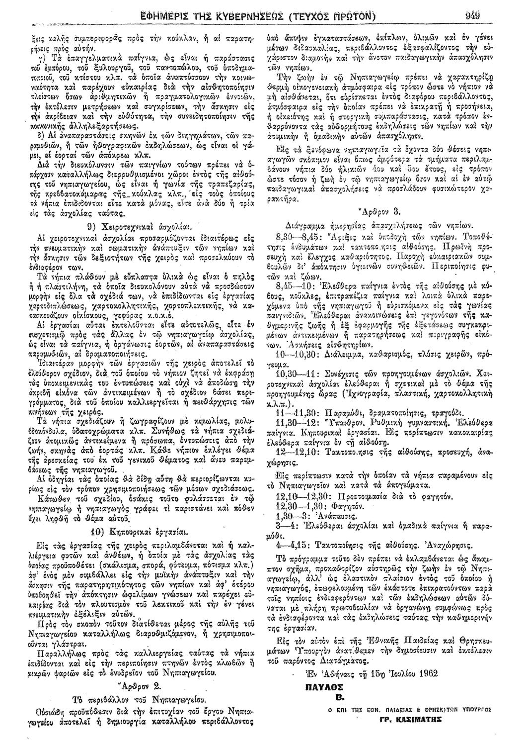 Δ. 494 Περί του αναλυτικού Προγράμματος των Νηπιαγωγείων του Κράτους