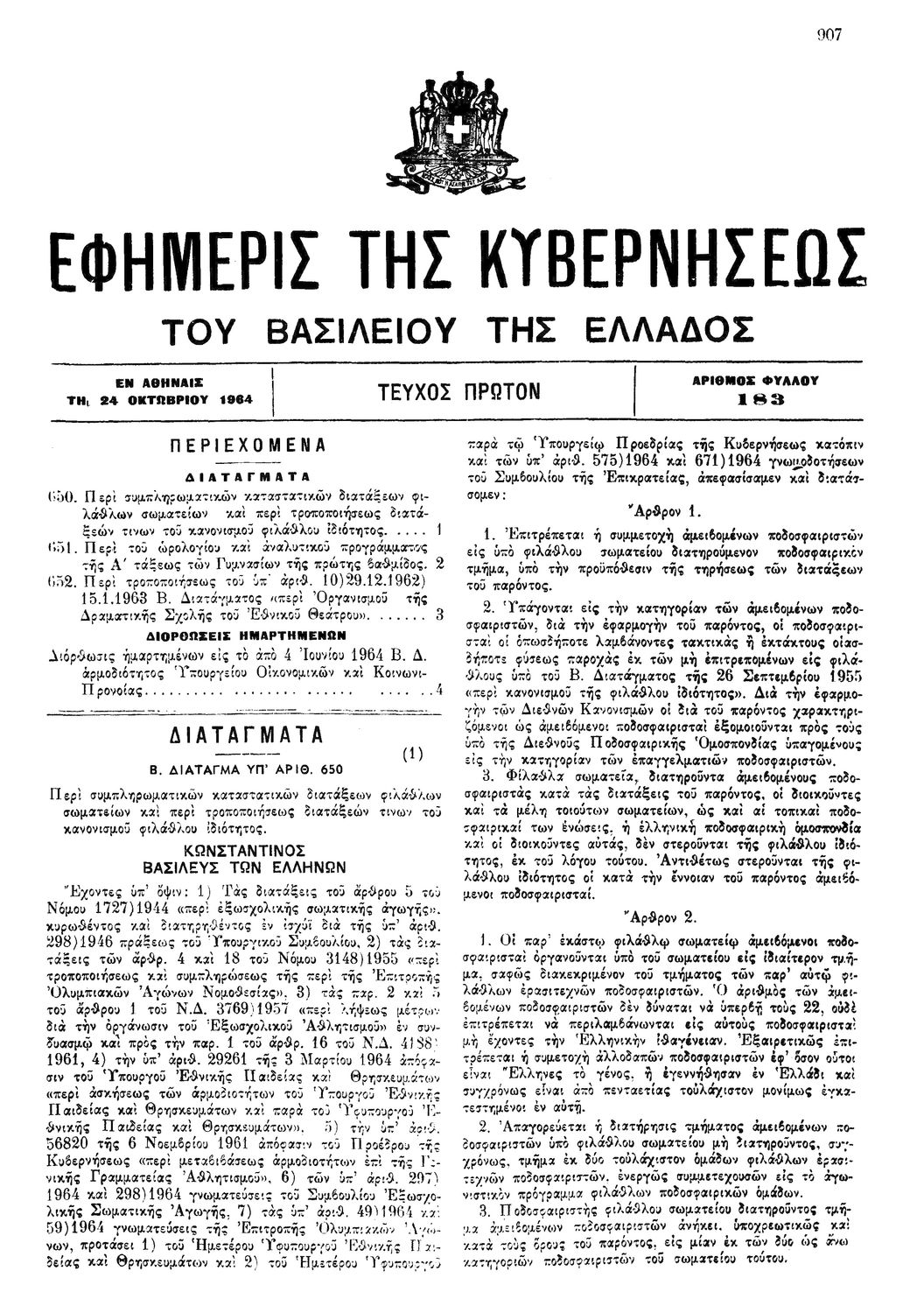 Κωδικός αναγνώρισης: 1964-183A Τίτλος: ΦΕΚ 183/24.10.1964, Τεύχος Α Μέγεθος και υπόστρωμα: Φεκ προγραμμάτων σπουδών, 6 σελίδες. |