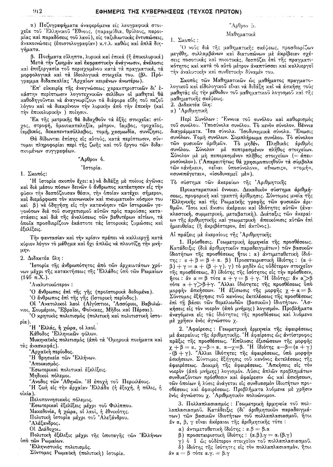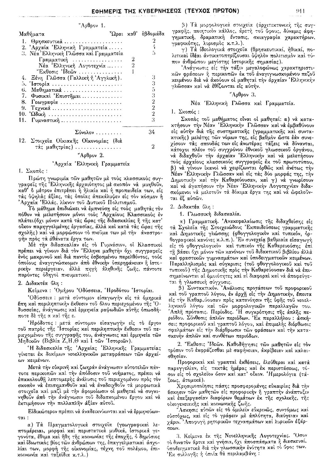 Παρουσίαση περιεχομένου: Δ. 651 Περί του ωρολογίου και αναλυτικού προγράμματος της Α' τάξεως του Γυμνασίου της πρώτης βαθμίδος Σχετικές σελίδες: 1, 4-8 |